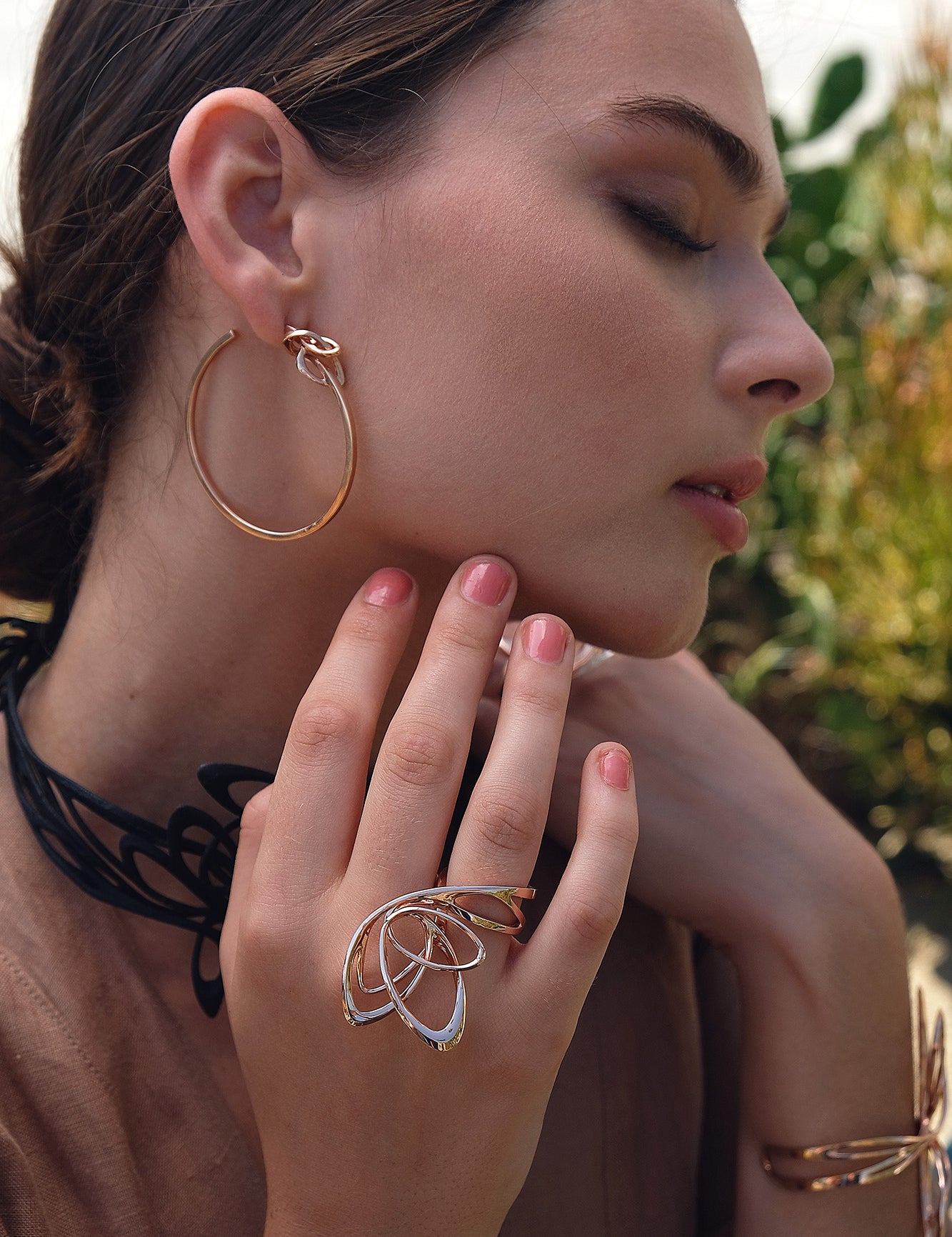 Founded by architects, our practice approaches jewelry as a form of wearable architecture. Through advanced 3D modeling and additive manufacturing, we explore form, structure, and material beyond the limits of traditional jewelry making. Each piece is designed in full three dimensions—creating not only visual impact, but a spatial relationship between body, object, and movement.