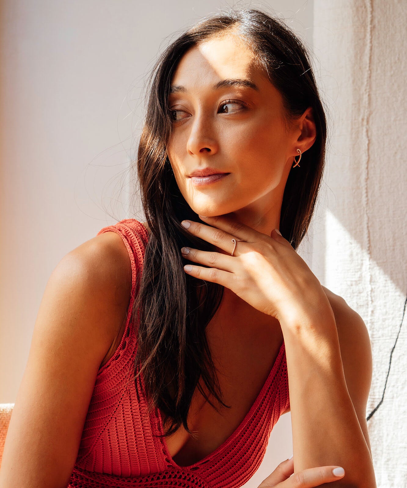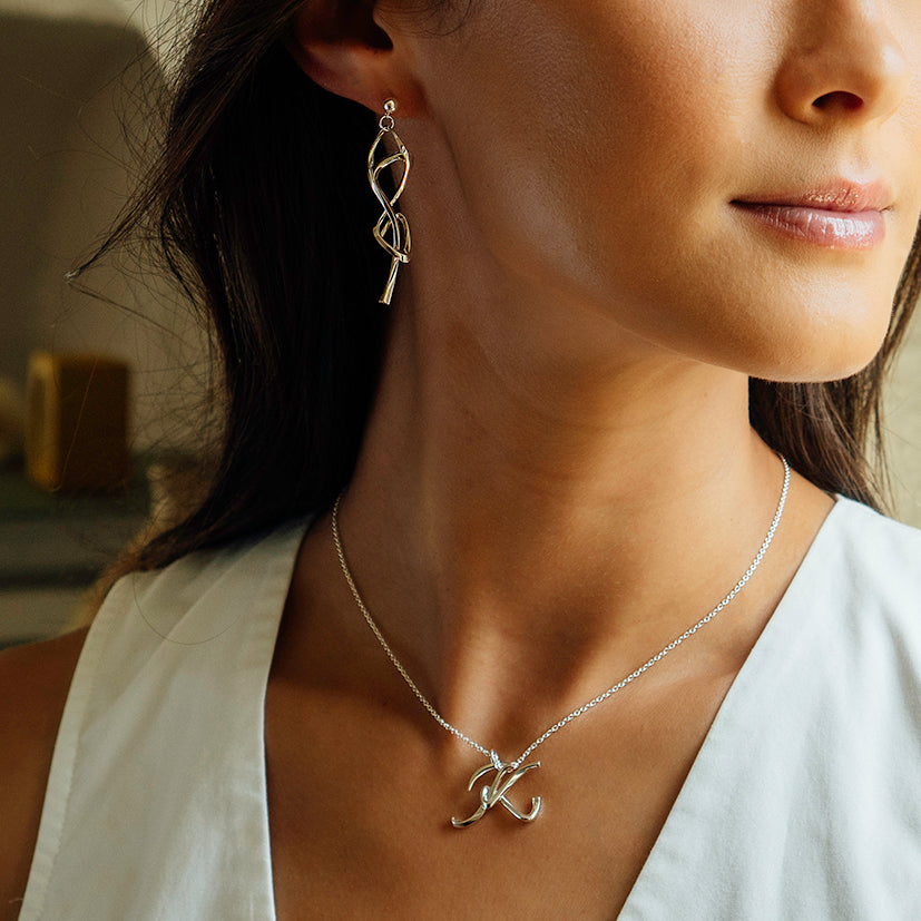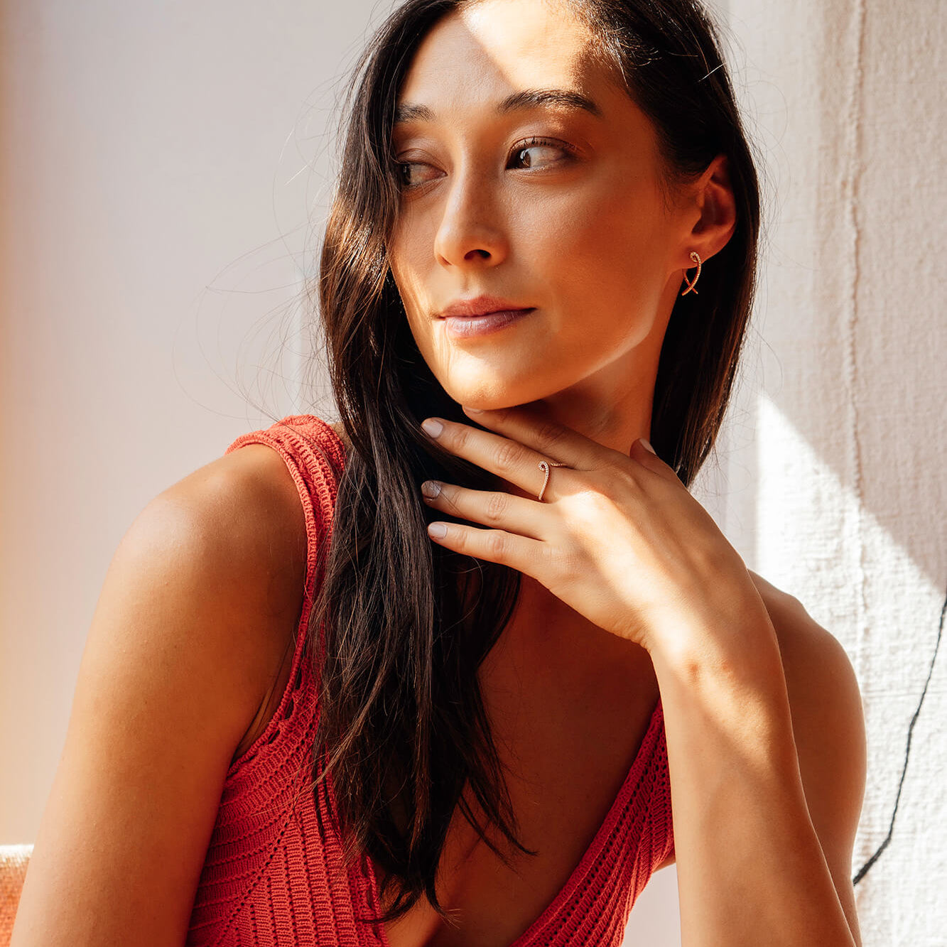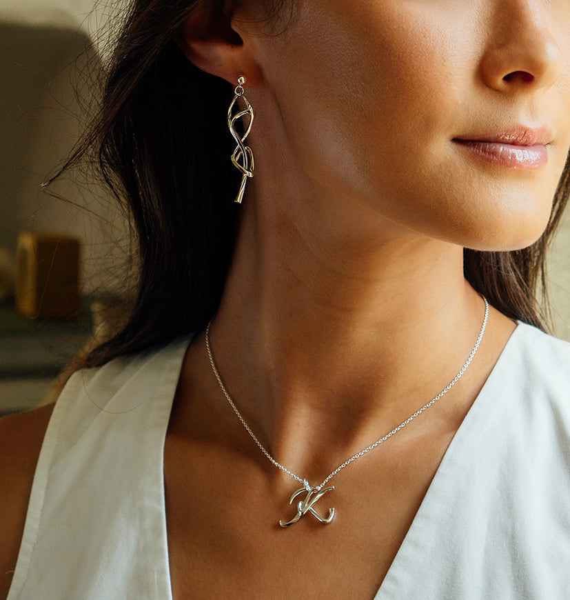 I have always thought of jewelry as “architecture on the body,” and we carefully consider the relationship of each piece to our body and to each other. The way I approach the design of a jewelry piece is quite similar to how I approach the design of architecture. I first think about the context where this design will be worn, so for example, the hand would be the “site” for a ring. I would then think about interesting ways that I can highlight and “fit” into this context. Most of our rings nest and stack in an unconventional ways, and each one of our necklaces has an unique way of dressing our neckline. This is most evident in the design of our Mobius ring where the ring drapes over the knuckle in a sinuous loop to create a larger statement.