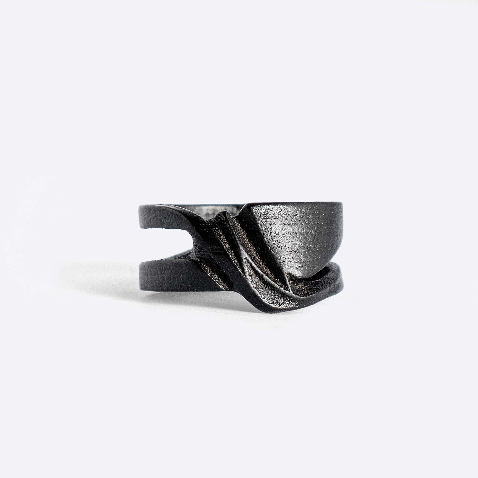Velum Steel Ring in gray steel with drapery-inspired curved design and open back split bands