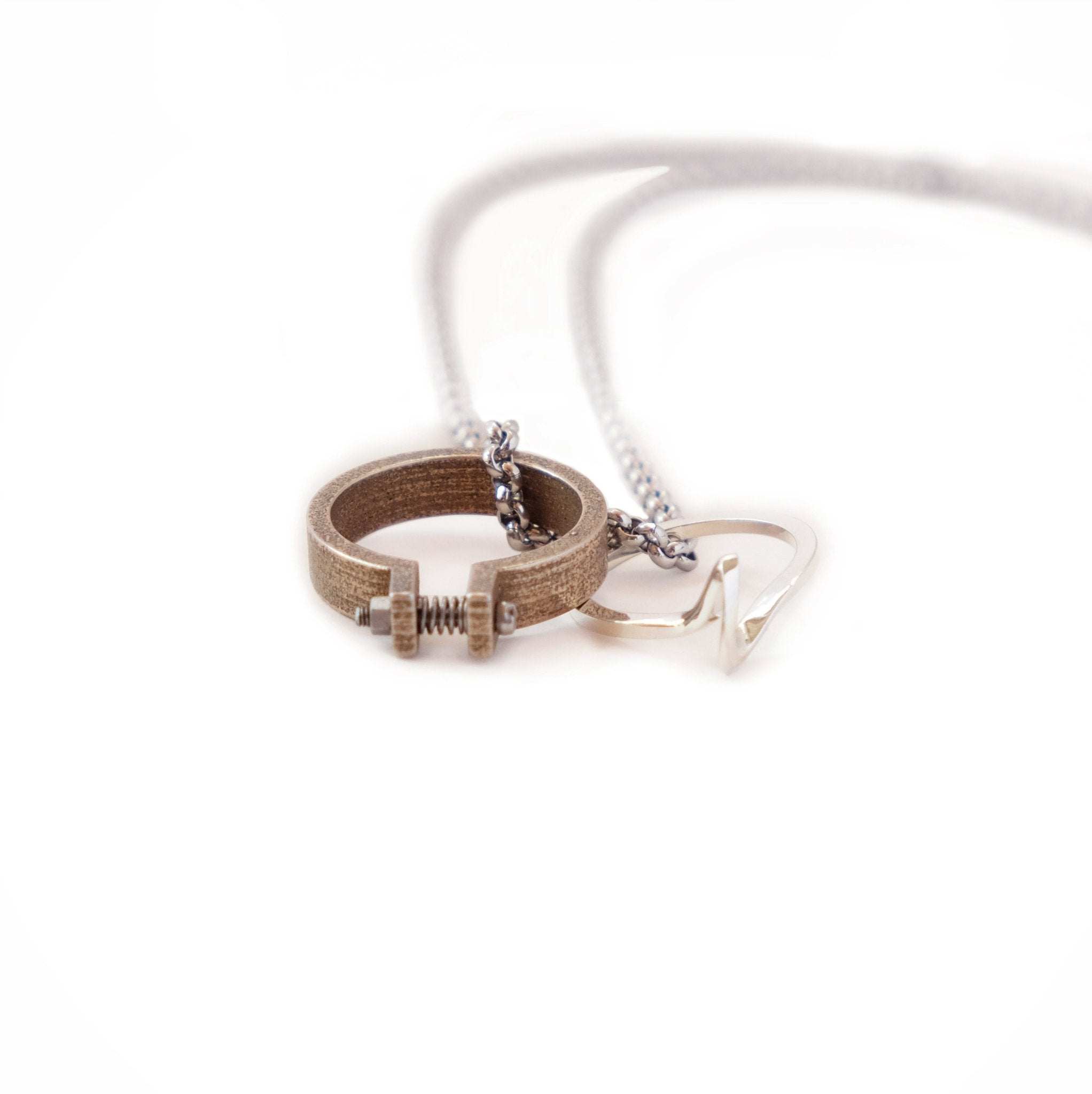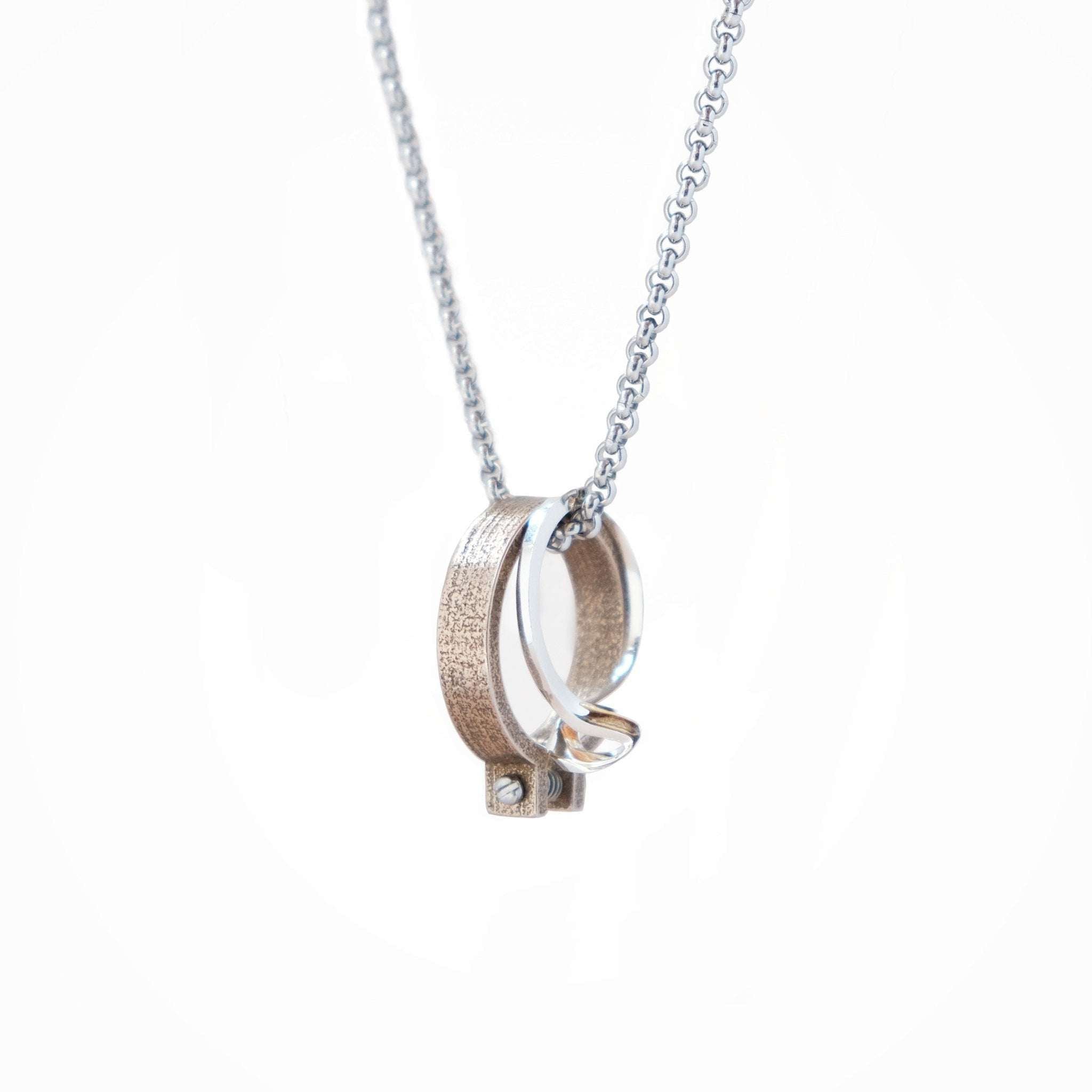 This gift set features our exclusive 3D printed men's jewelry line, the Machina Q ring and the Machina L Chain Necklace. This men's collection features adjustability within a machined aesthetic: stainless steel and mechanistic hardware are assembled for an industrialized approach to a men's ring. The Machina Q ring unifies hardware and 3D printed stainless steel. The Machina L Chain Necklace features a 24" Rolo chain for a more refined and heavyweight look. Whether you choose to wear your wedding rings, partnership rings, or a single ring, you can customize your necklace to hold pieces that are special to you.