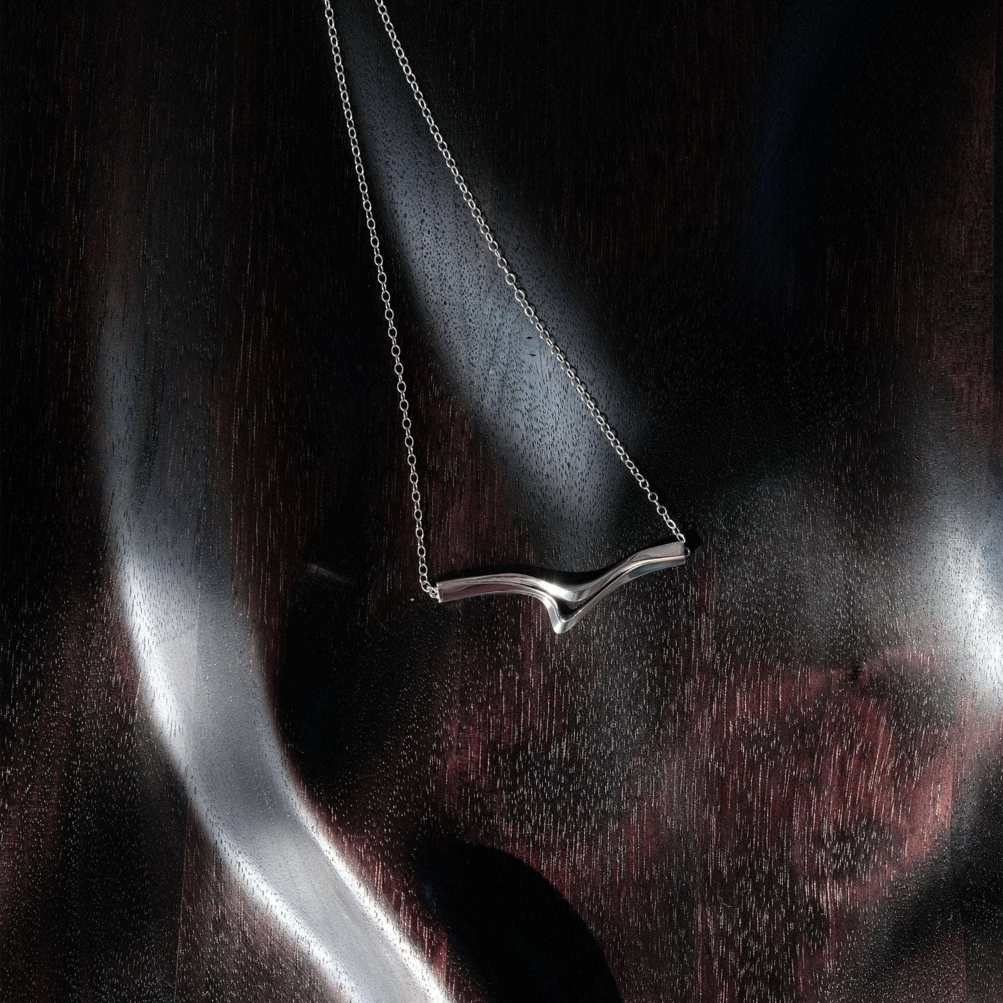 Andante Pendant is a companion to the Adagio Pendant, featuring LACE’s signature twisting, stacking curves and precision edge detailing.  This pendant is currently available in Sterling Silver with a mirror finish.
