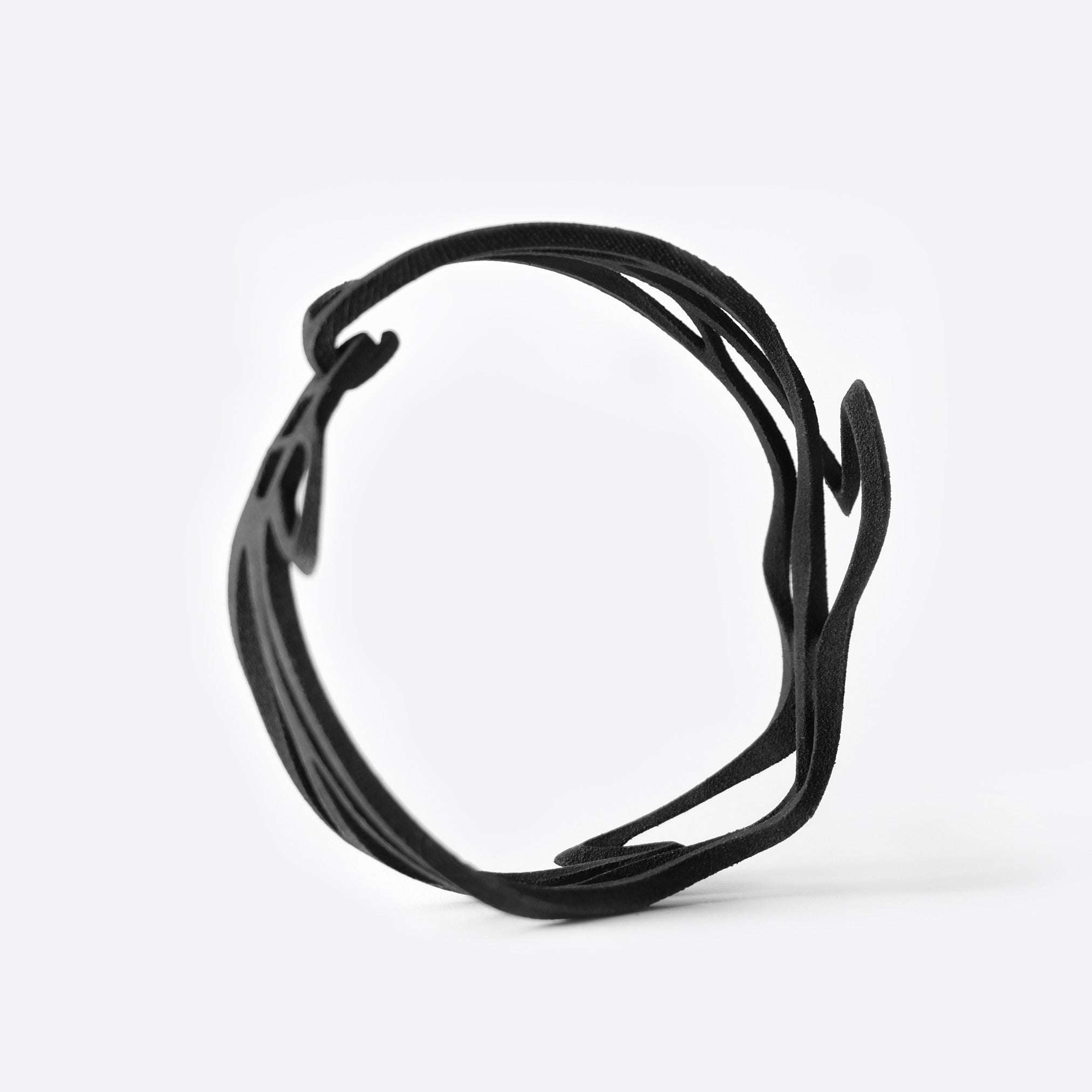 The Legato Necklace/Choker features LACE’s signature twisting, stacking curves and precision edge detailing. This elegant choker is fully 3D printed in TPU (Thermoplastic polyurethane), a strong yet flexible polymer that is comfortable to wear.