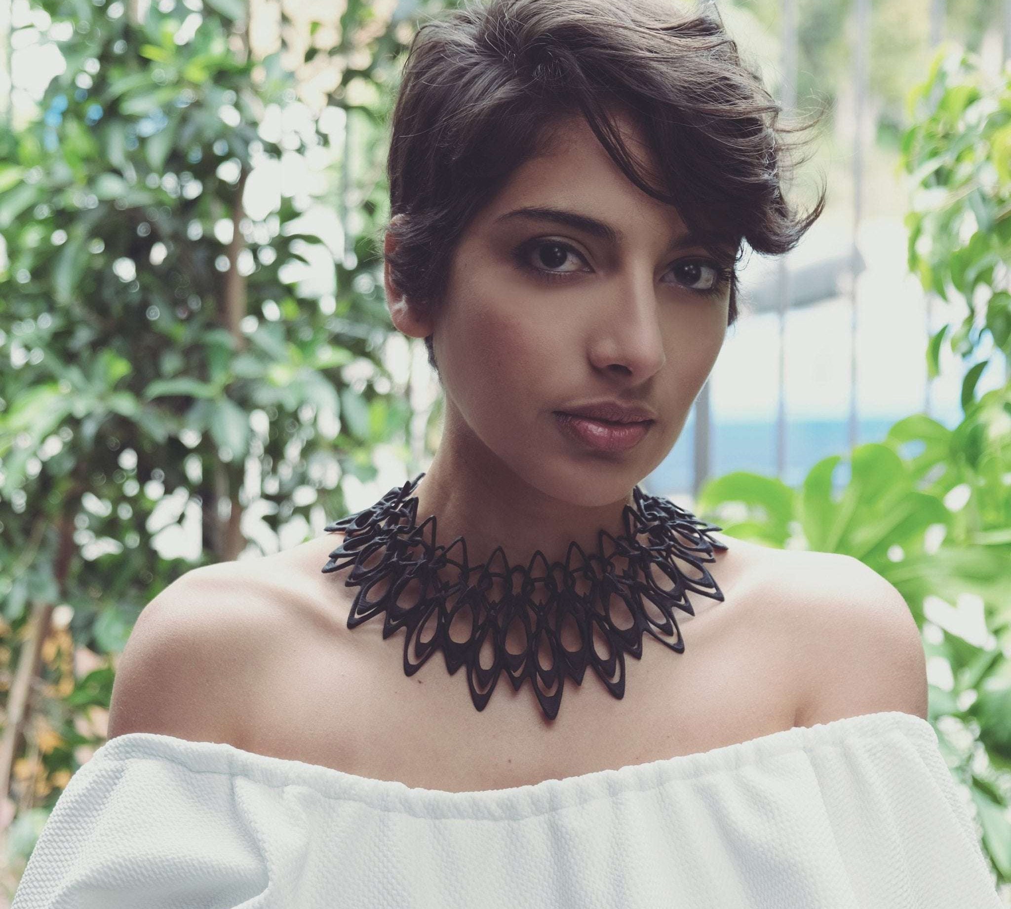 Bold, contemporary designs as unique as you are. The LACE necklaces feature innovative interlocking patterns, 3D printed layer by layer in one seamless piece from bottom to top. Designed to be lightweight and full of personality, these necklaces make a lasting impression while ensuring both comfort and style. Embrace the next evolution in jewelry with our expertly crafted 3D-printed necklaces for women.