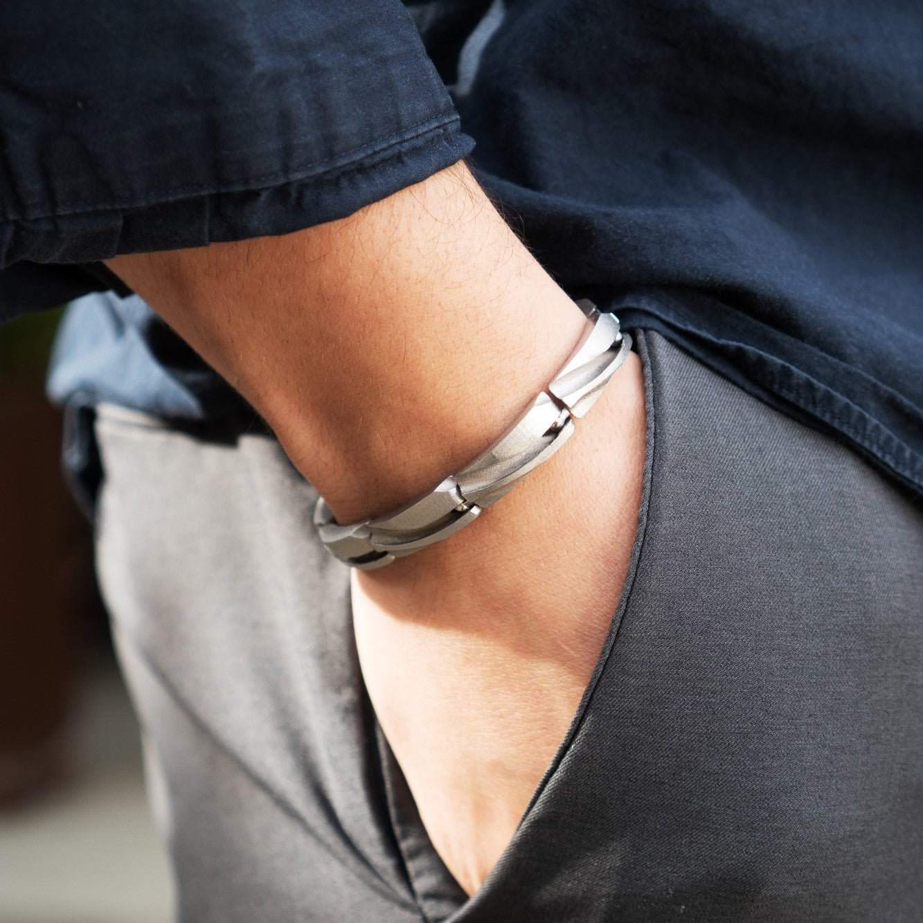 Modern unisex stainless steel link bracelet with unique ball joint connections and adjustable links