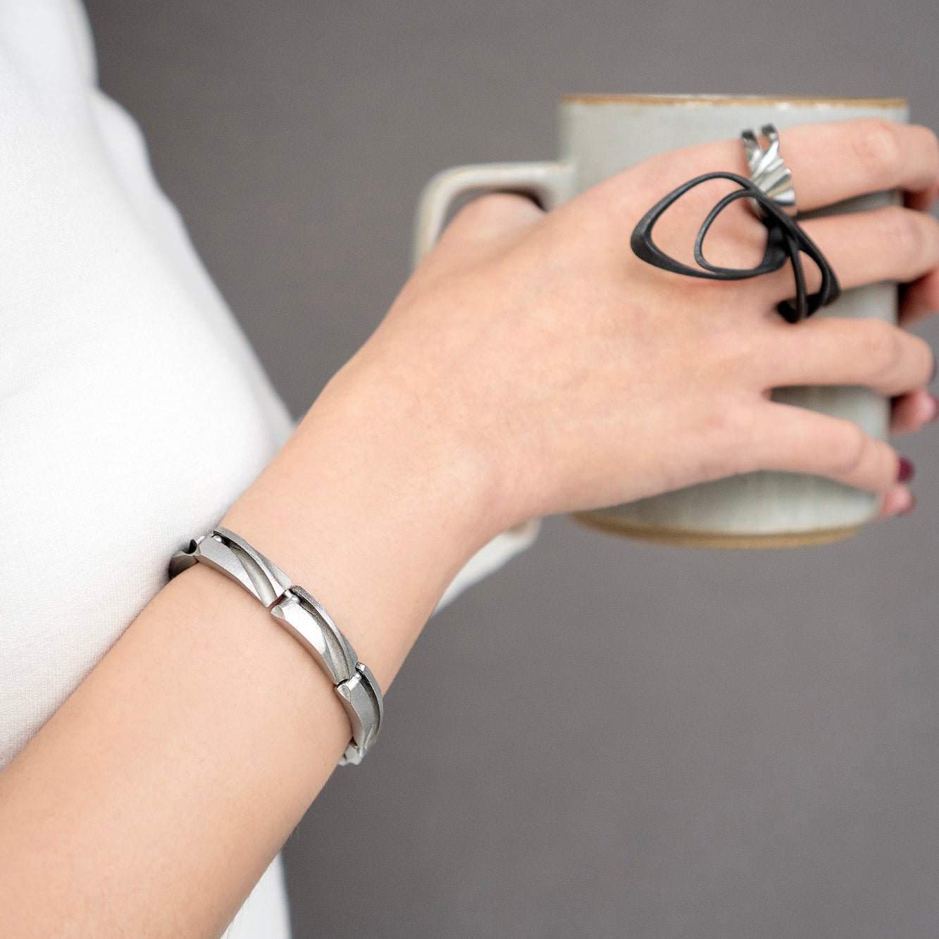 The Link Bracelet redefines the traditional chain link bracelet.  Each link of this bracelet is connected to each other through a ball joint that runs along an integral track on an adjacent link.   This unique connection systems require no additional hardware, hinges or pin connectors.  Link is produced using 3DEO’s proprietary Intelligent Layering® technology that allows for the highest level of precision and detail currently available in 3D printing.  Because each link is an independent piece, this unisex bracelet can be adjusted to fit all wrist sizes, as the links can be easily removed or added.  A perfect gift as a companion bracelet!