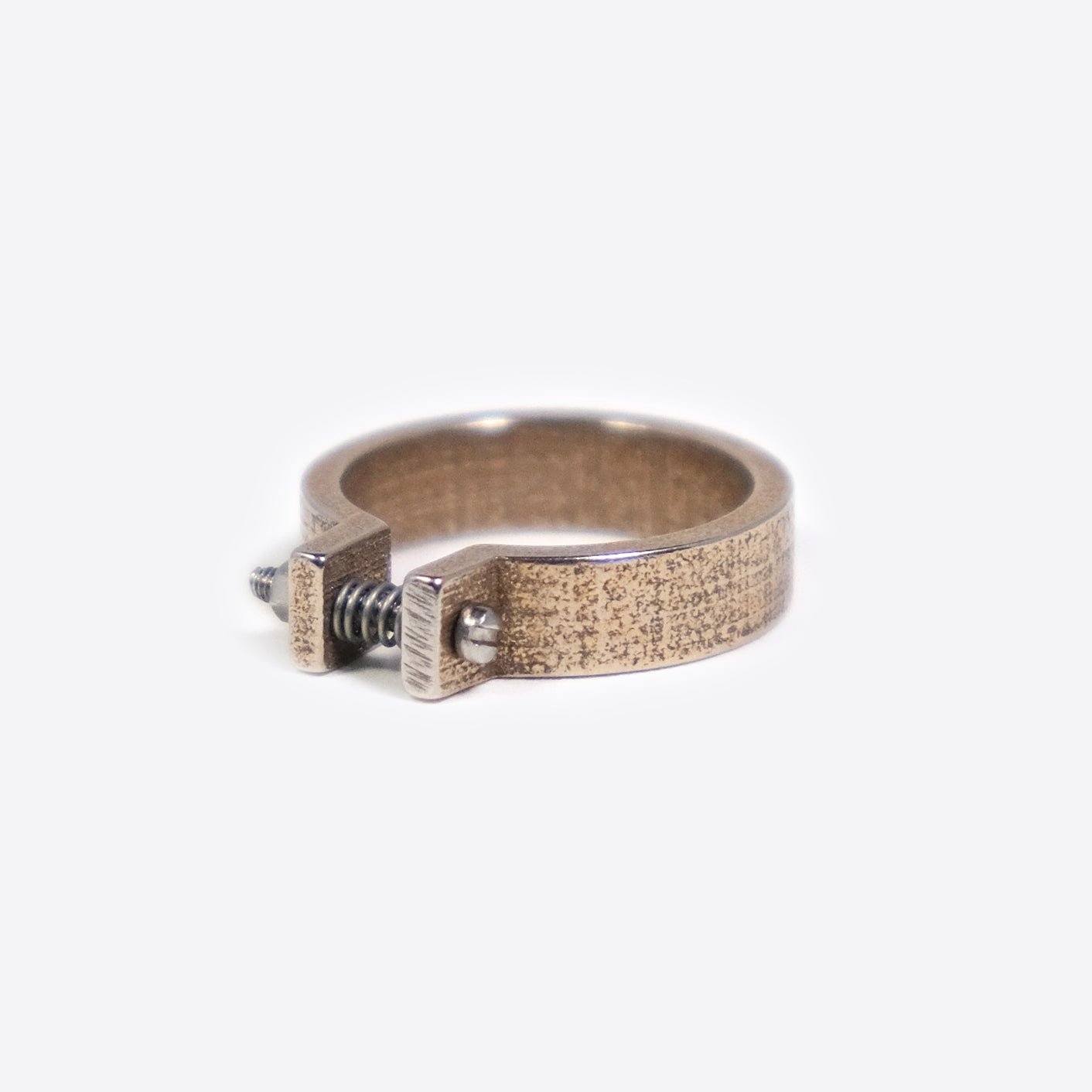 The Machina Collection is an exclusive 3D printed men's jewelry line featuring adjustability within a machined aesthetic. Stainless steel and mechanistic hardware are assembled for an industrialized approach to a men's ring.