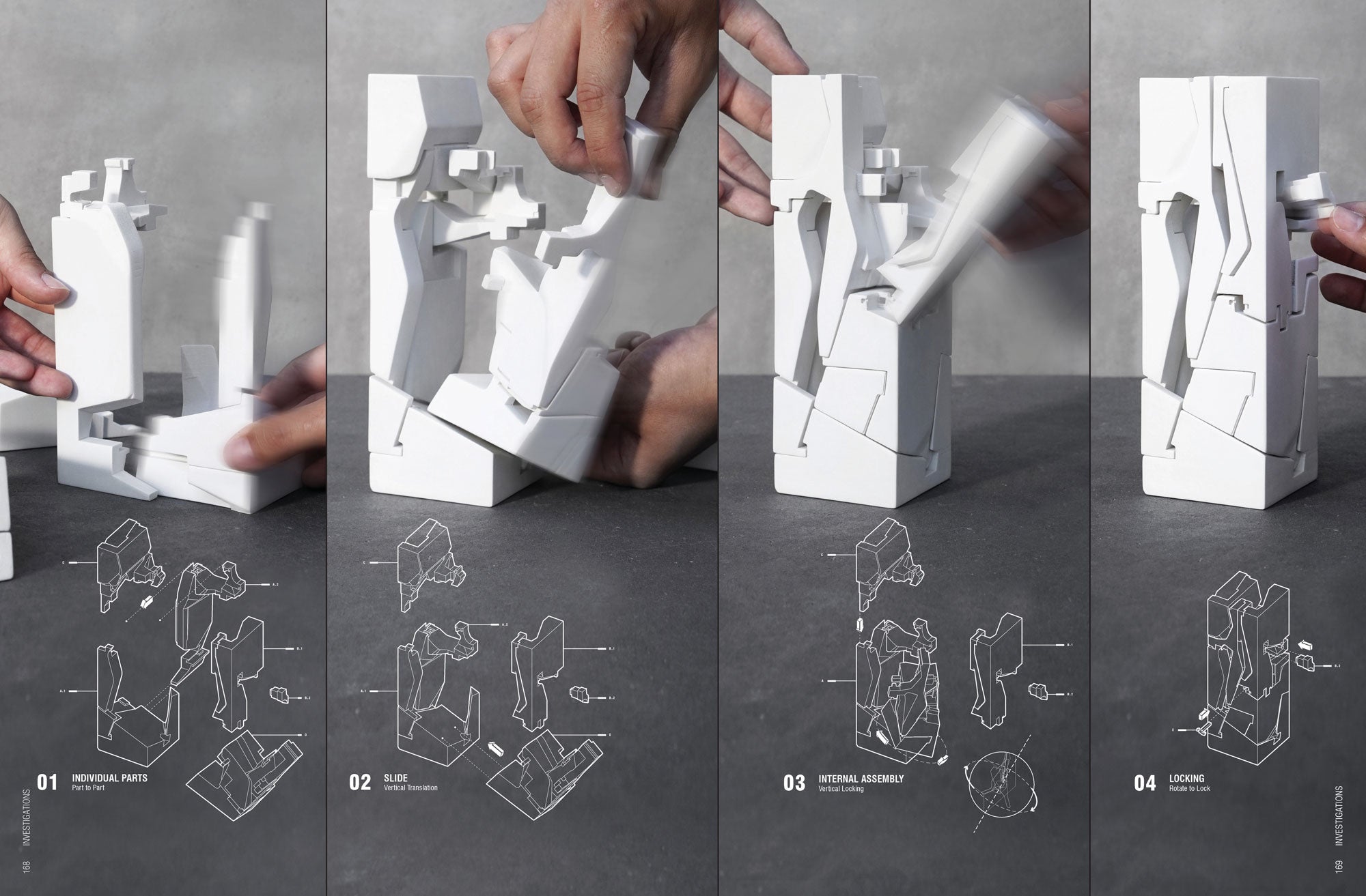 Organized into three primary sections, Puzzling Assemblies is a dissection of this idea—offering insights into its potential to enrich contemporary architectural thinking. Through rigorous design investigations, detailed drawings, and diverse analysis, Oyler Wu unpacks some of the fundamental assembly methods of puzzled forms and engages a series of physical and perceptual operations that boldly reimagine them at a range of scales.
