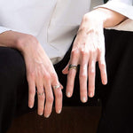 The Amos Ring is our minimal, timeless ring.  The ring features a single twisting band that folds upward, with our precision edge detailing to highlight the movement of the ring.  The Amos ring is a companion ring with Amor Ring.  The two rings stack perfectly on top of one another and can be worn as a single unit or separately.