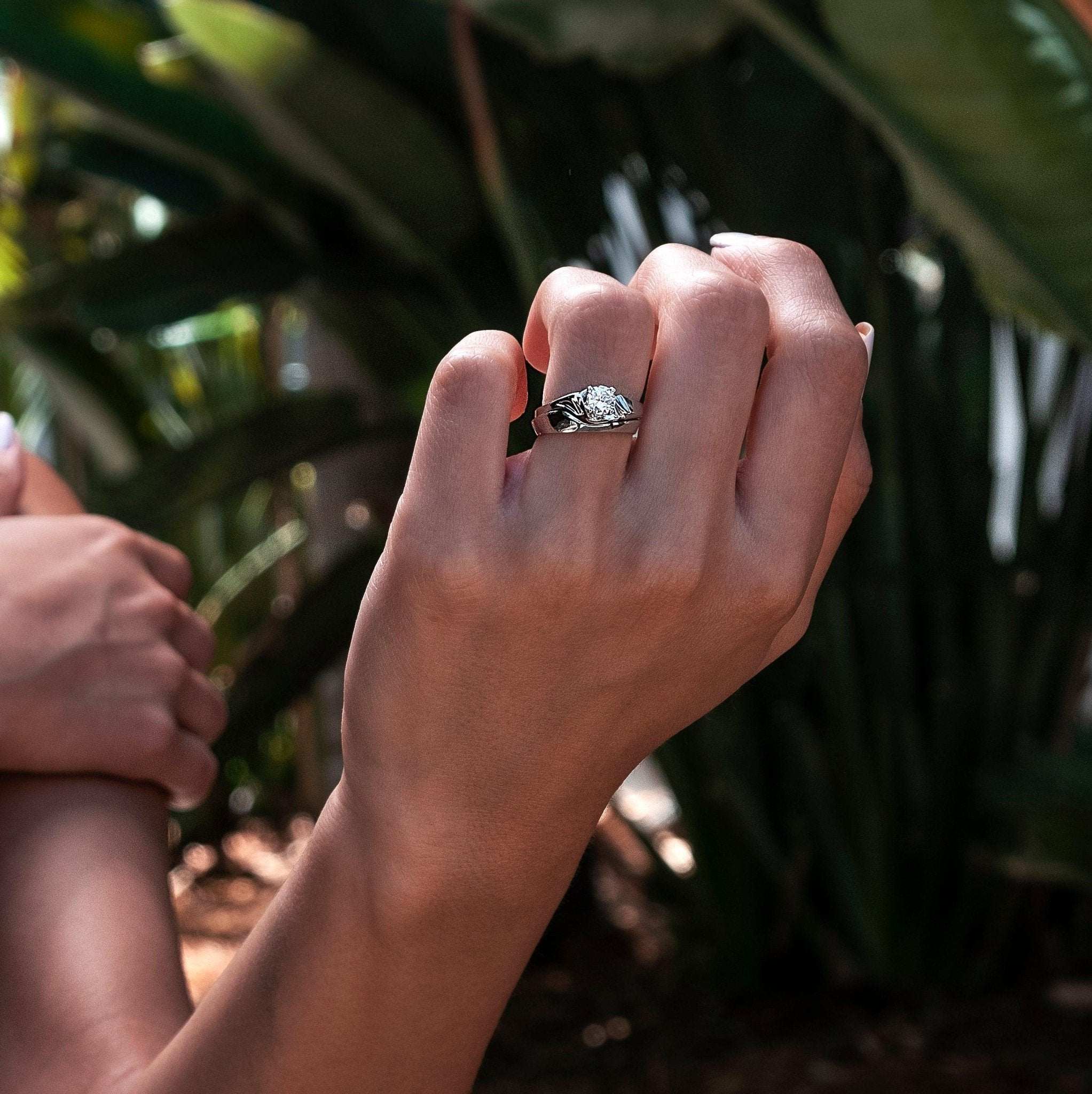The Agnes Wedding Band is a the companion to our new Iris Engagement Ring. The design compliments the Iris ring with its delicate, elegant design. It is perfect for those who prefer a minimalist approach to wedding bands, this ring perfectly completes Iris and creates the perfect union.