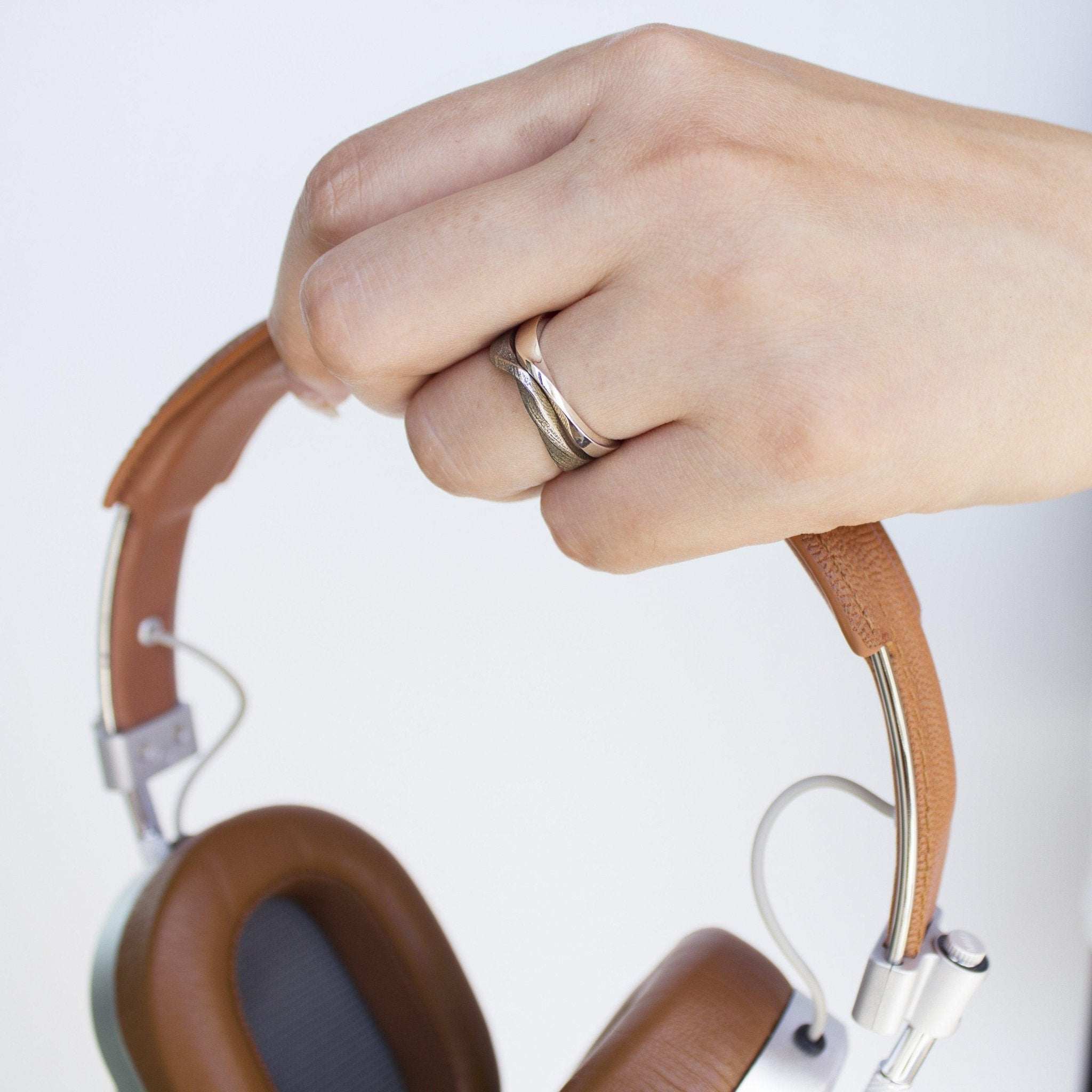 The Amor Ring is our most clean-line, timeless ring. The ring features a single twisting band with our precision edge detailing to highlight the movement of the ring. The Amor ring is a companion ring to the Amos Ring. The two rings stack perfectly on top of one another and can be worn as a single unit or separately.