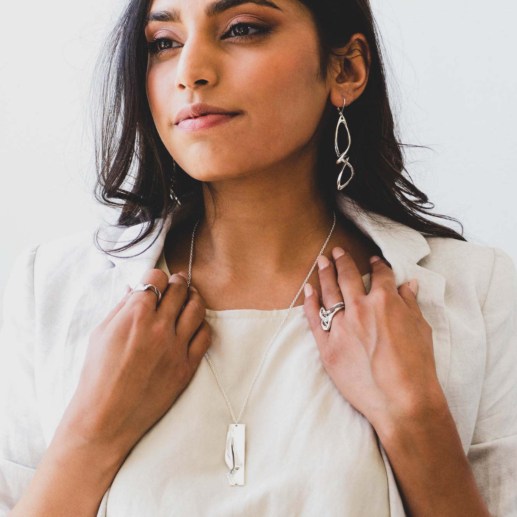 The Centri Earrings are the perfect dangly earrings.  It features a long, loose knot, with our signature precision edge detailing for an elegant, refined profile.
