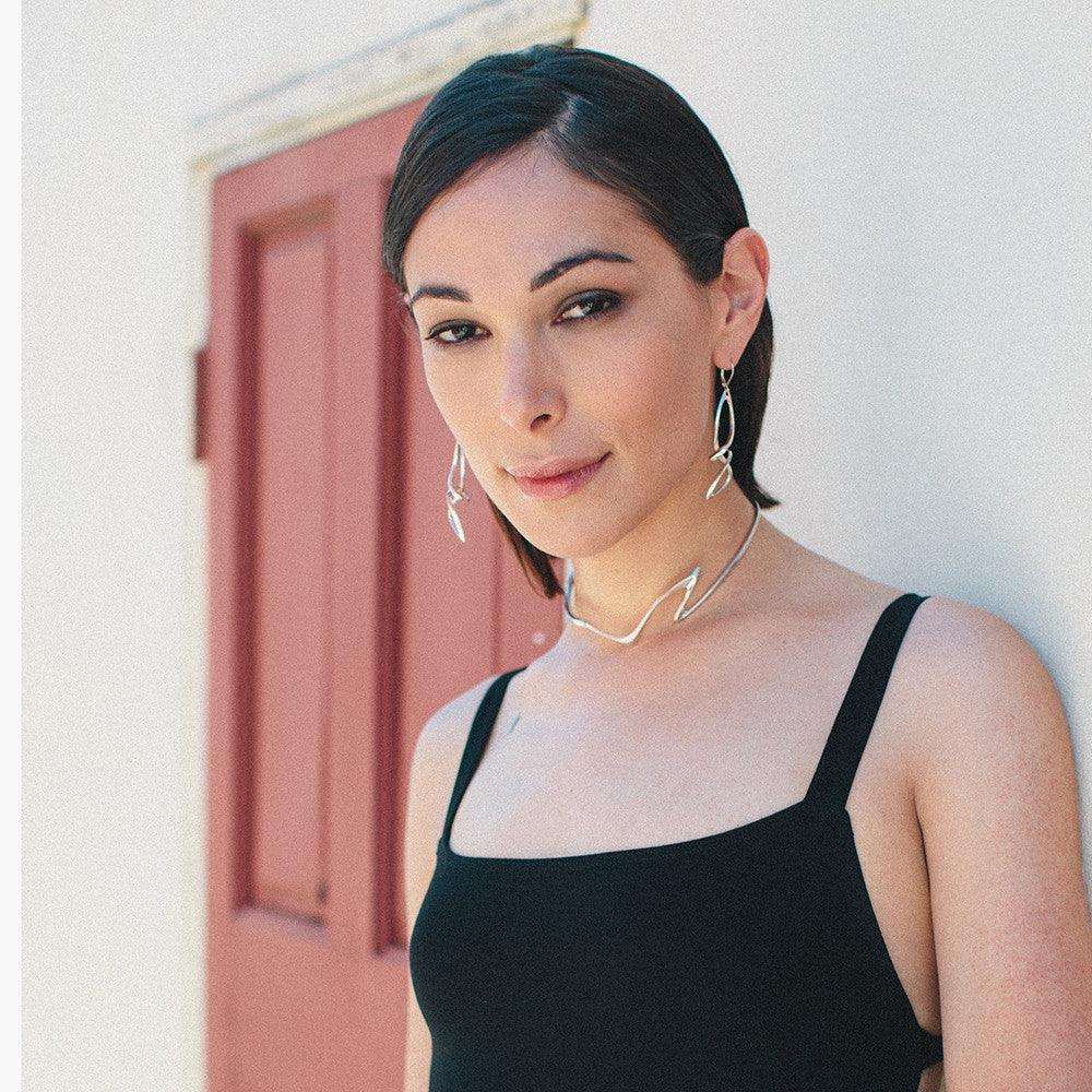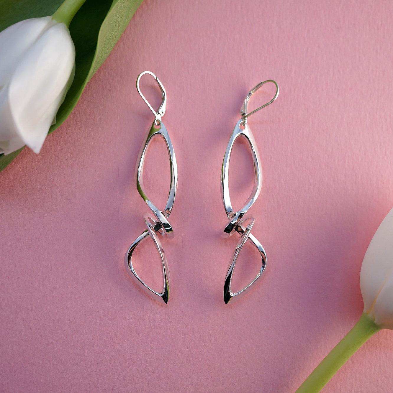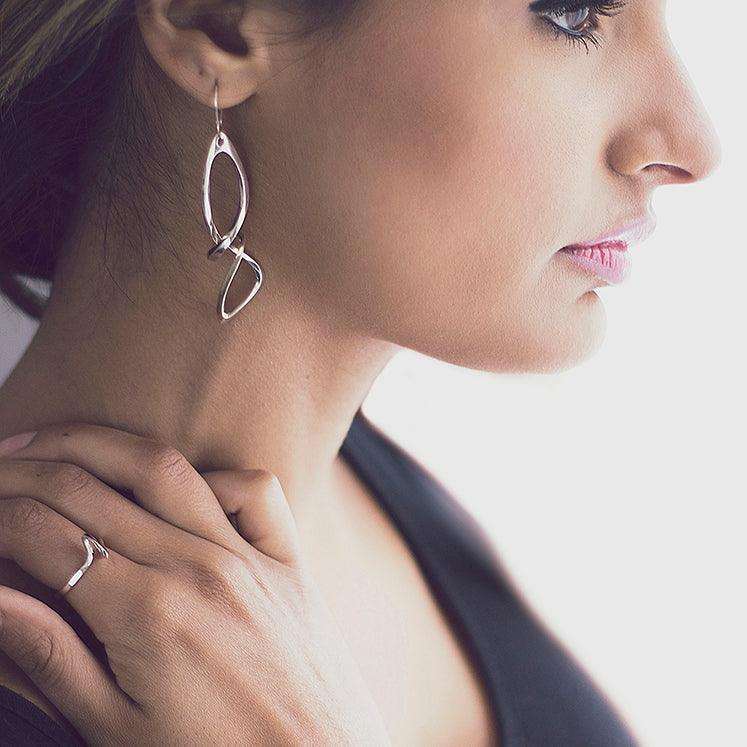 The Centri Earrings are the perfect dangly earrings.  It features a long, loose knot, with our signature precision edge detailing for an elegant, refined profile.