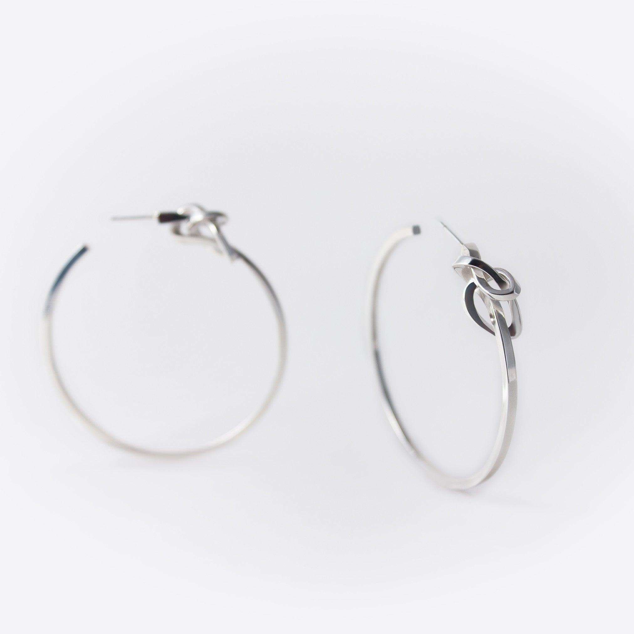 The Coda hoop features a loose knot at the top of the earring that unravels to form the hoop. Our precision edge detailing starts from the base of the hoop and follows the line of the earrings even at the tightest intersection. The Coda is the perfect statement hoop earring and great for all occasions.