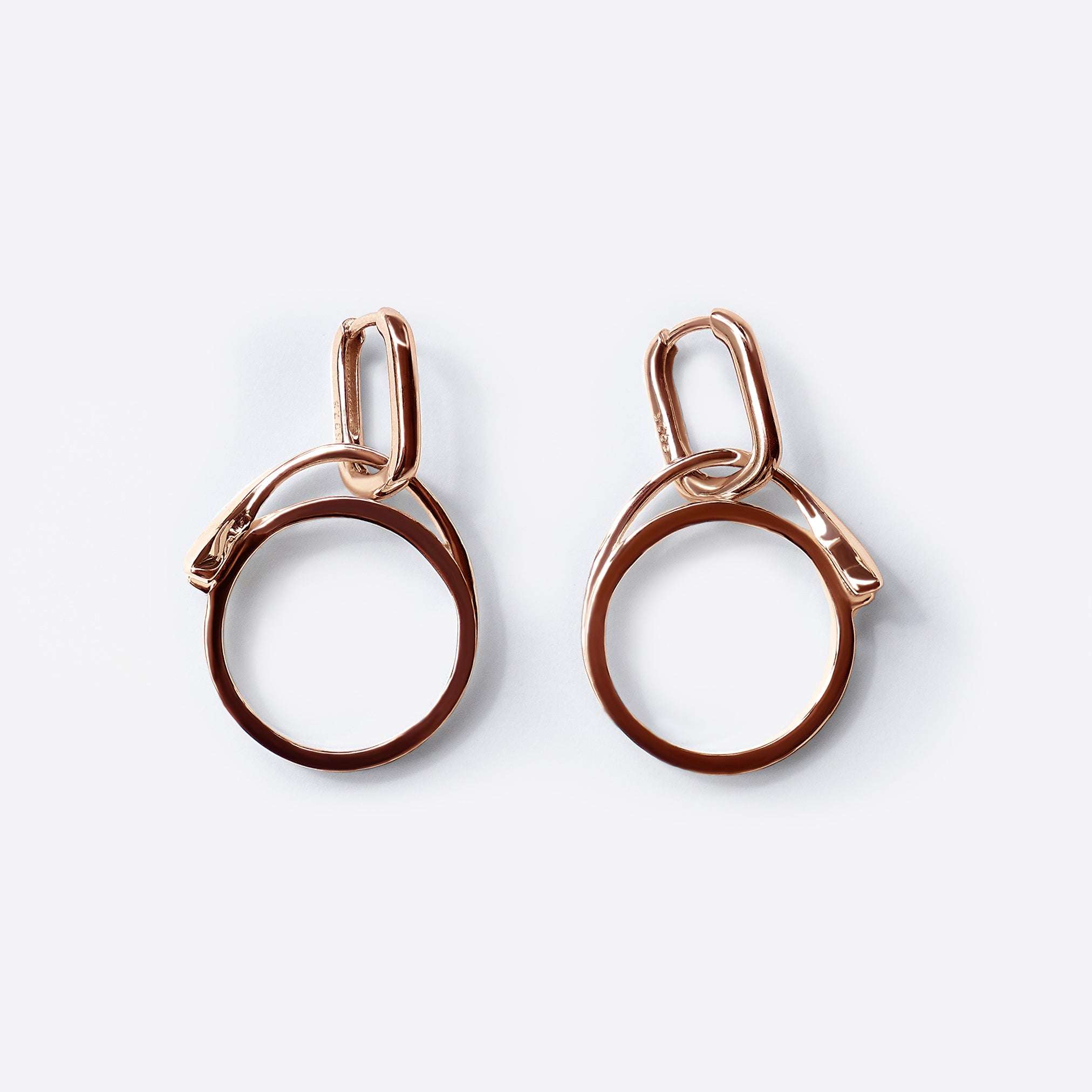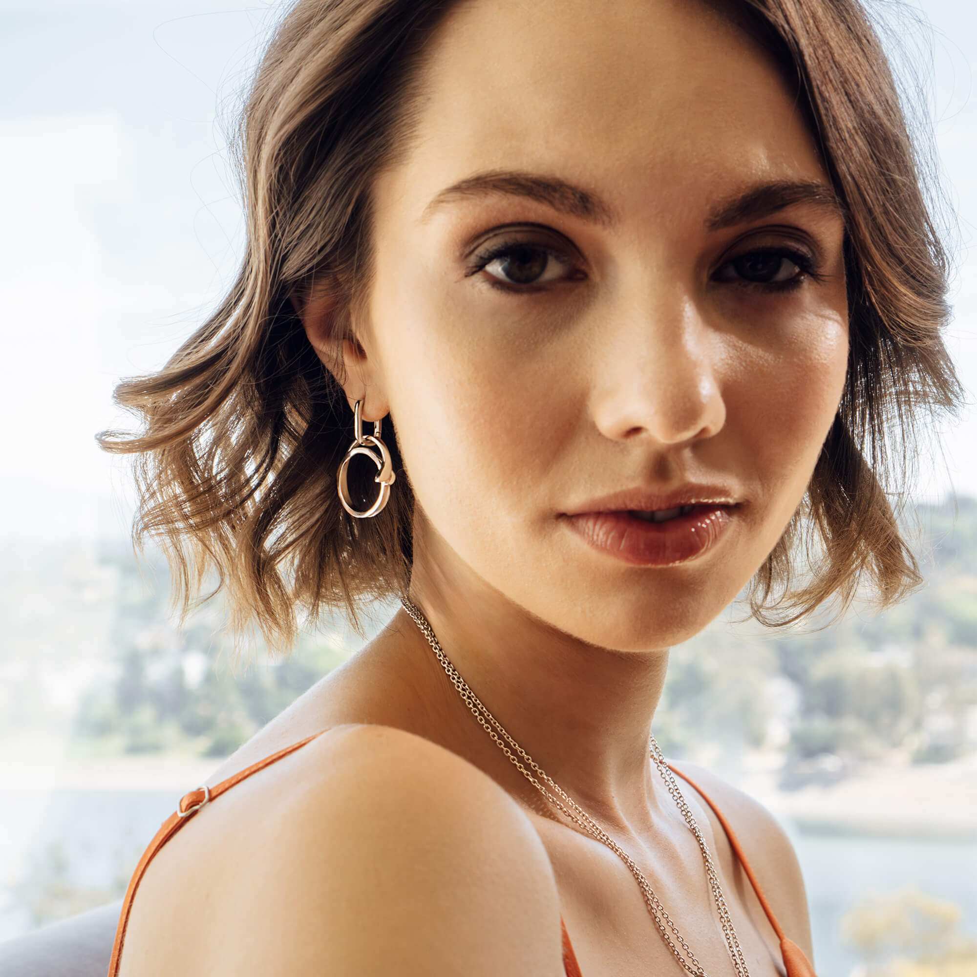 The top link of Halo earrings is detachable, allowing them to be worn as simple huggies or as dangle earrings in full. The bottom charm can be purchased separately and interchanged with the Chain earrings, offering customization options.