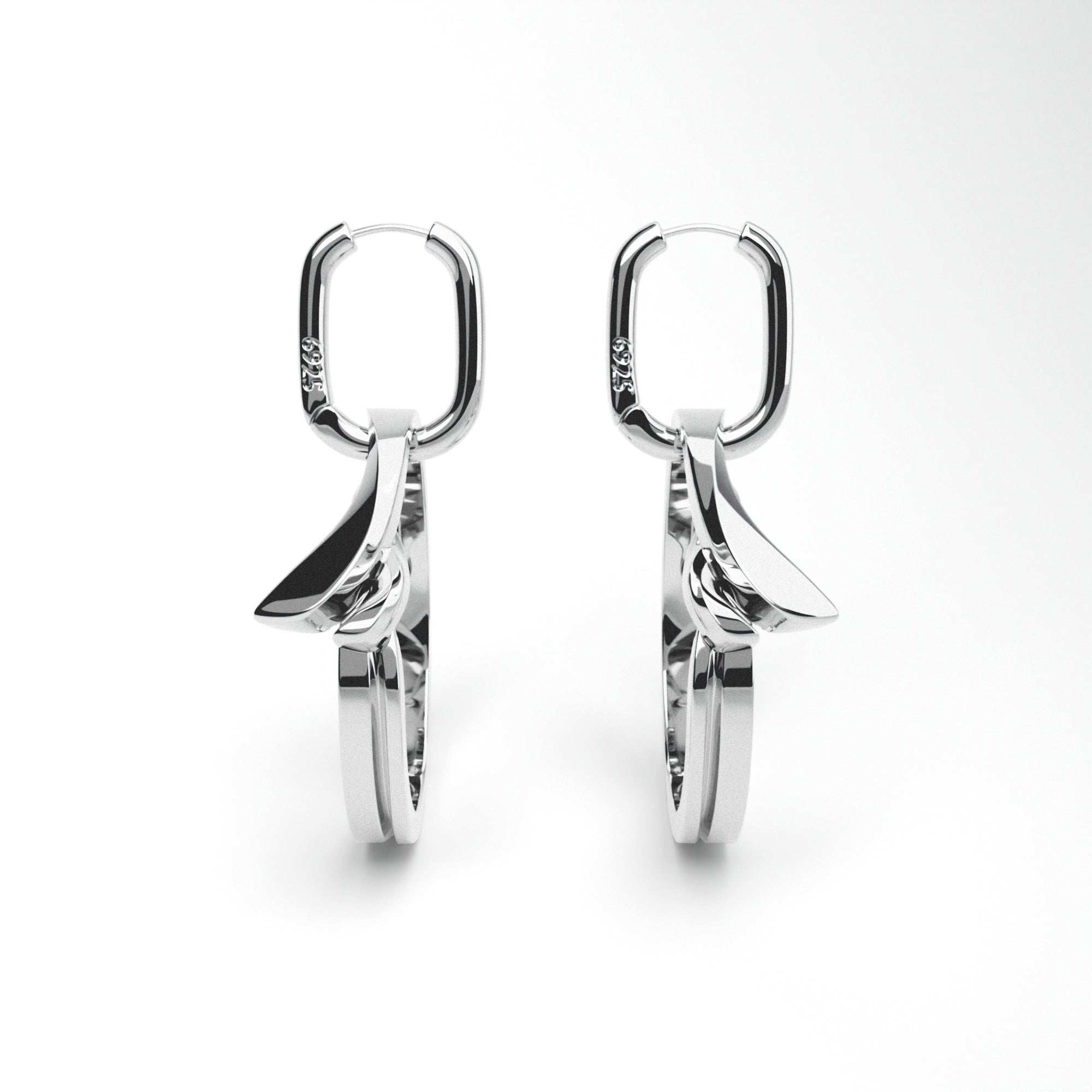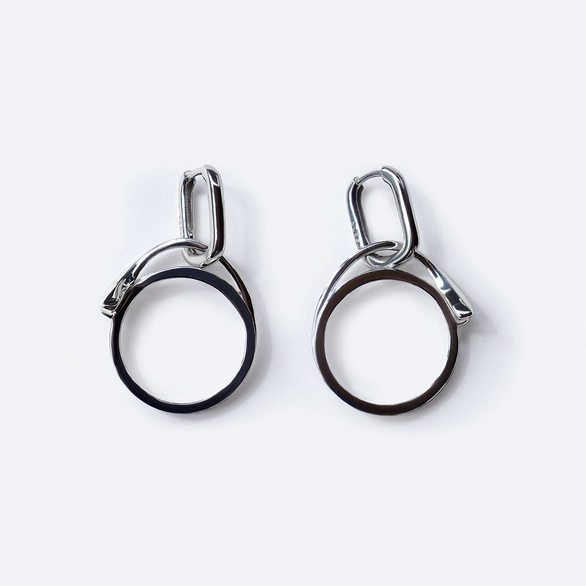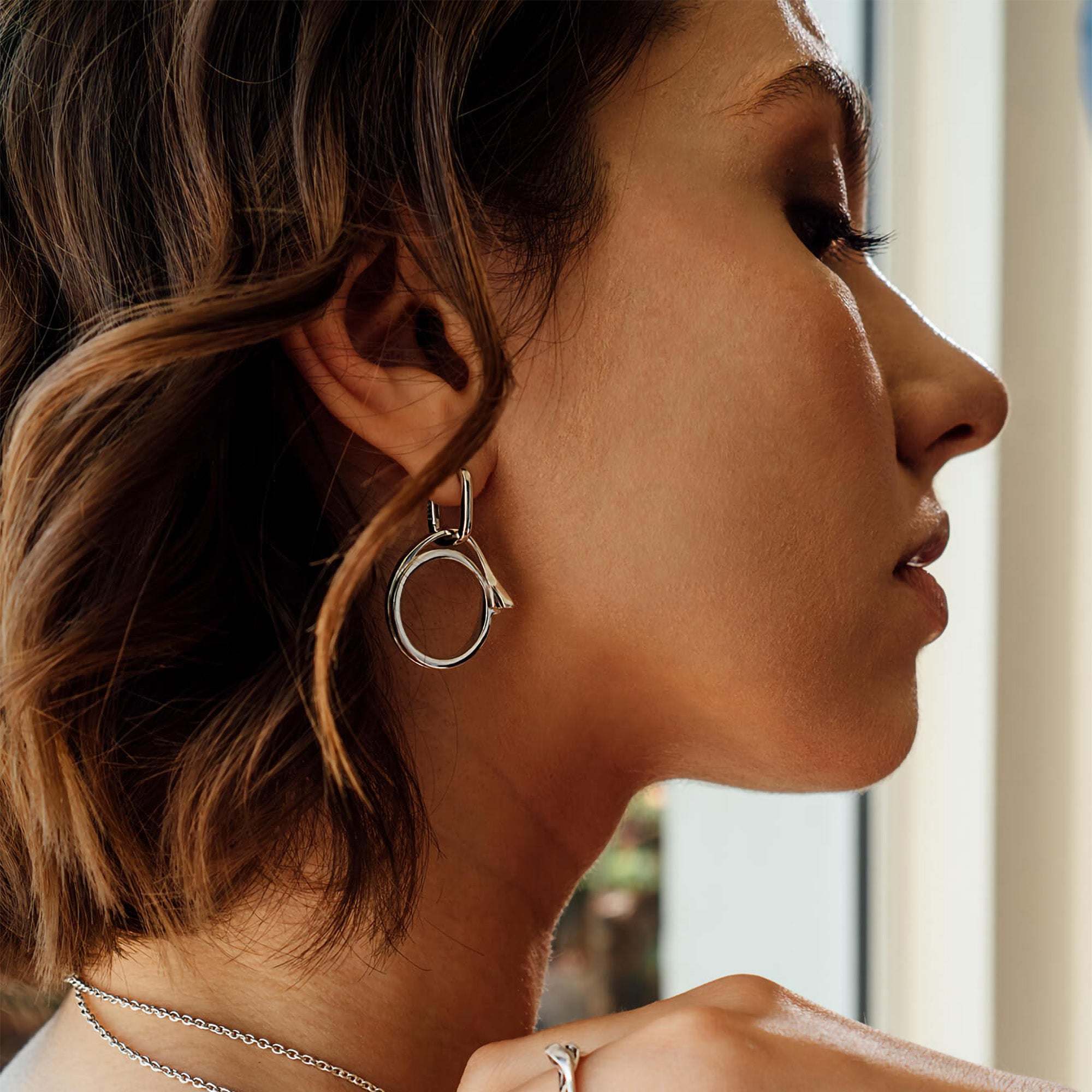 Sterling silver Halo earrings with detachable dangly hoop charms and modern sculpted design