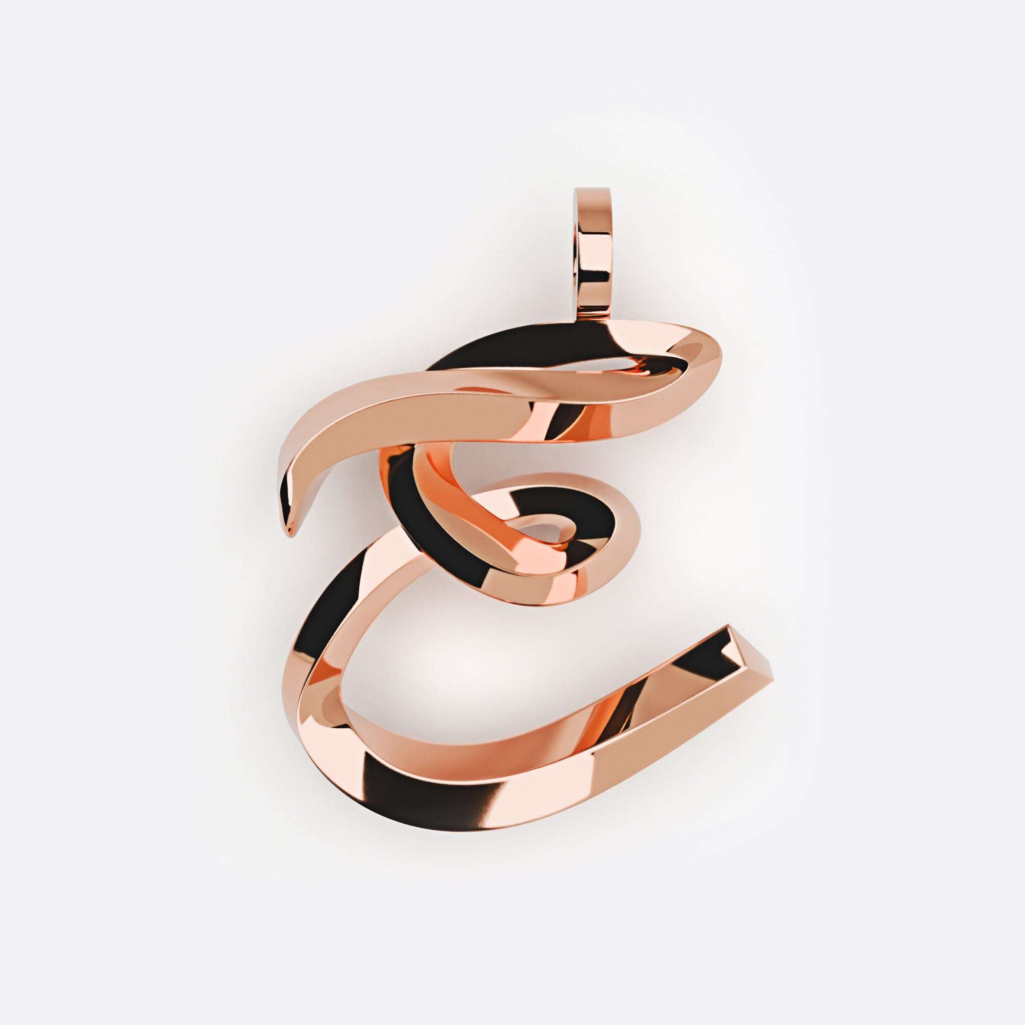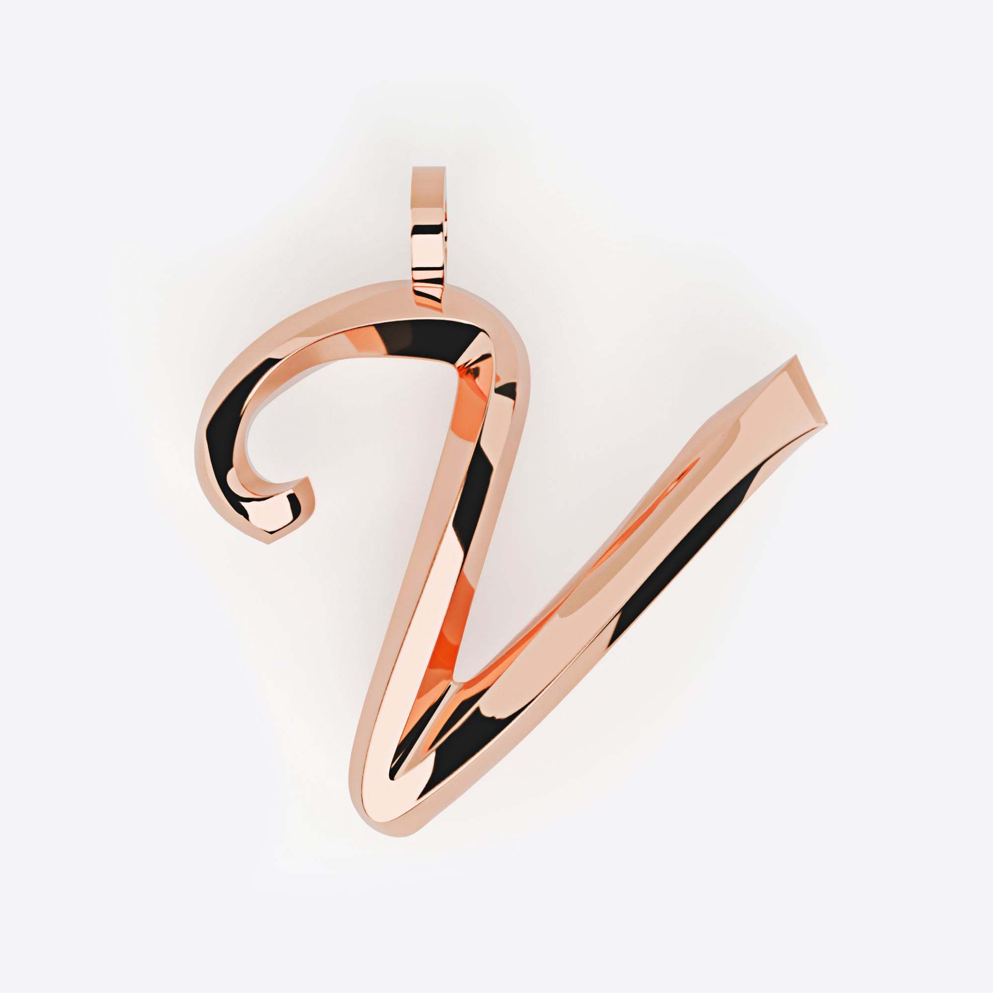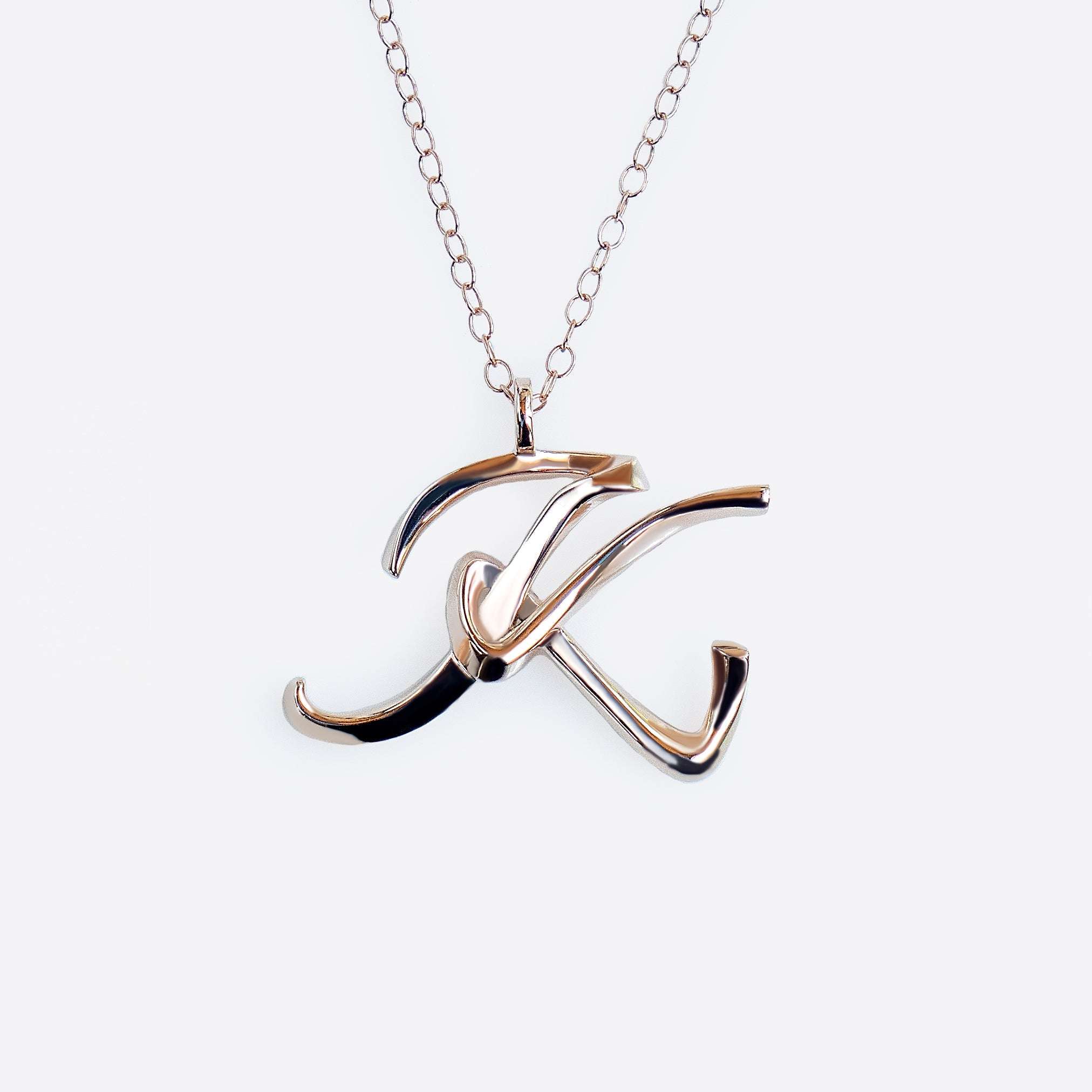 Rose gold Initials Pendant with 3D script design and smooth polished finish