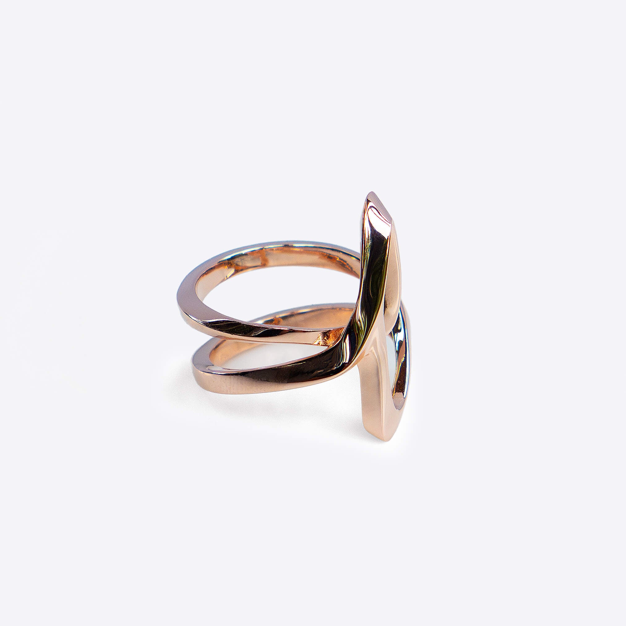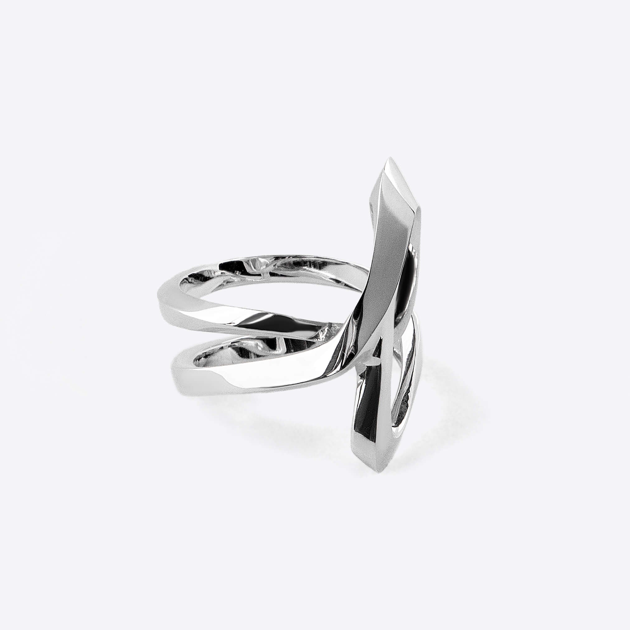 The L ring is the LACE's latest statement ring that extends from the Amare's concept of a loose knot. The design features two twisting lines merging at the front of the ring with our signature precision edge detailing to highlight the movement of the ring.