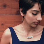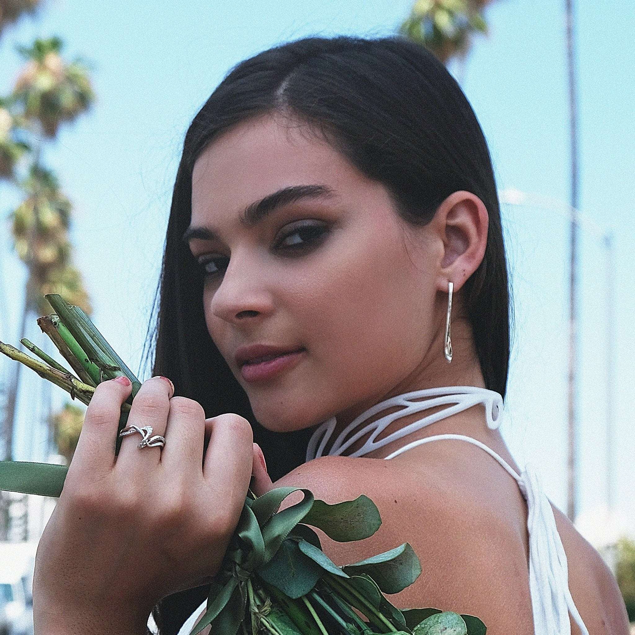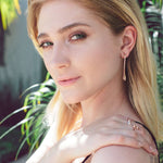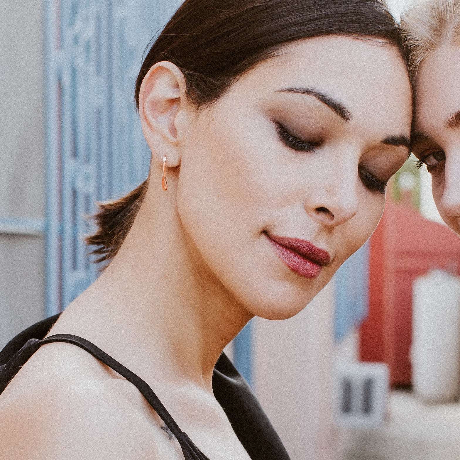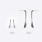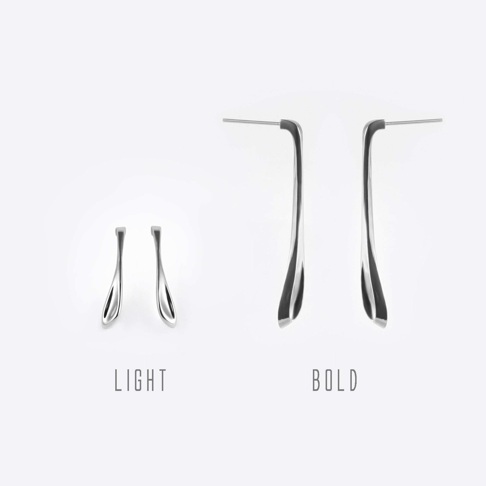 The Lini earring traces the vertical movement of a dew drop. The bold version is a 2” long version that features our signature edge detailing with a slight curve at the end. The light version is the perfect everyday stud earring that gives a timeless sparkle to your overall look.