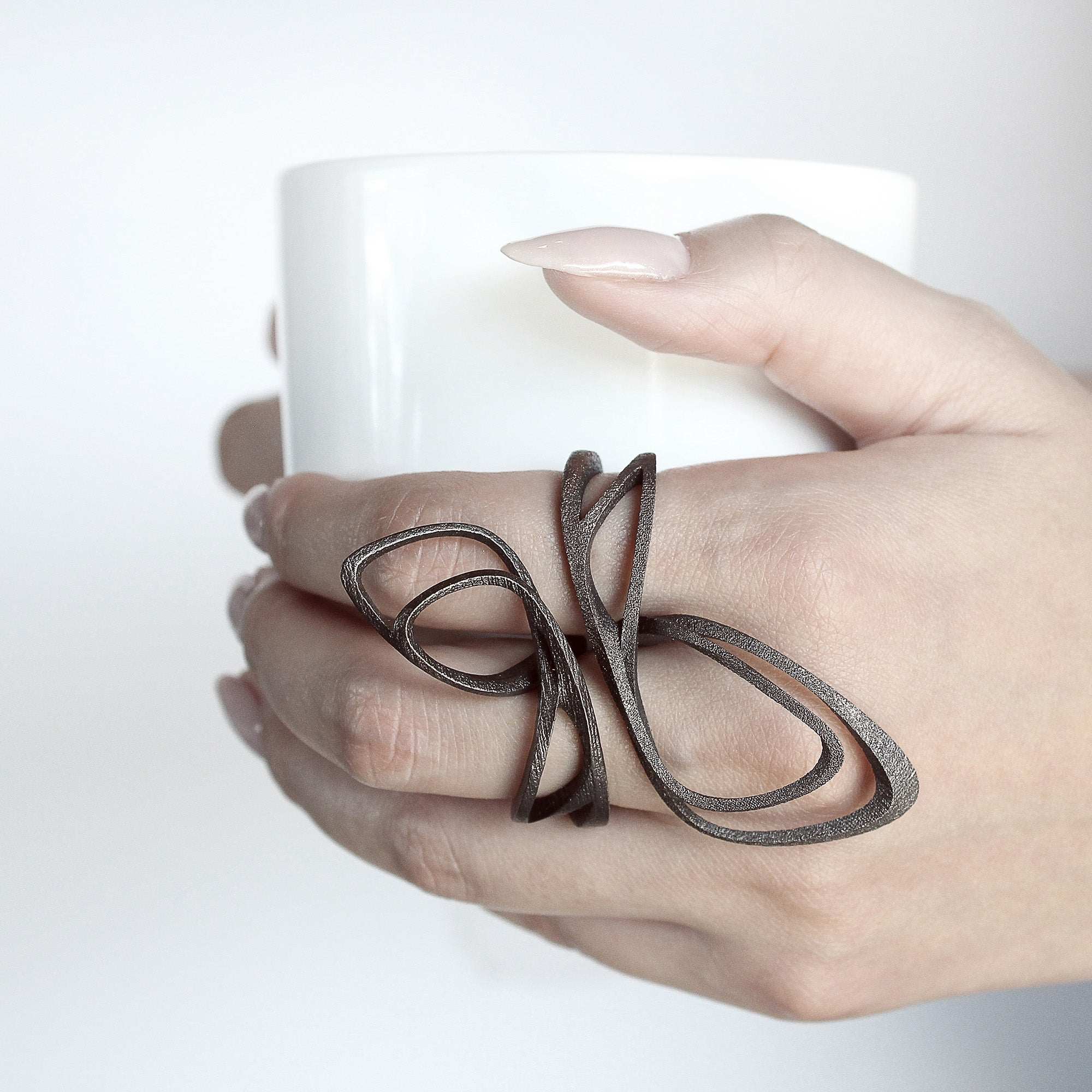 Mobius Bold Steel Ring matte finish textured bronze elliptical design