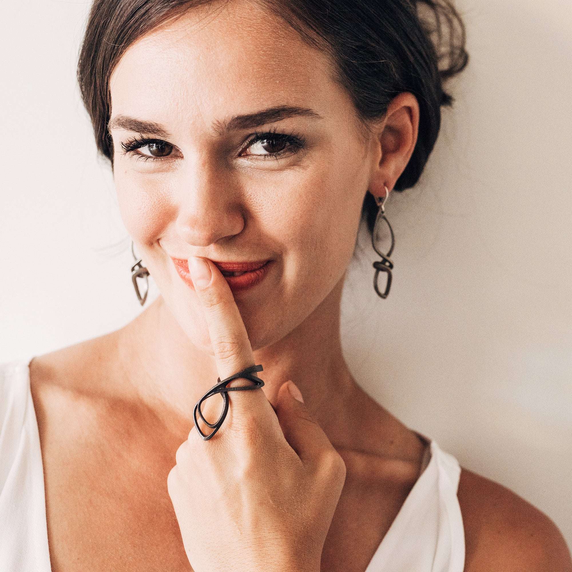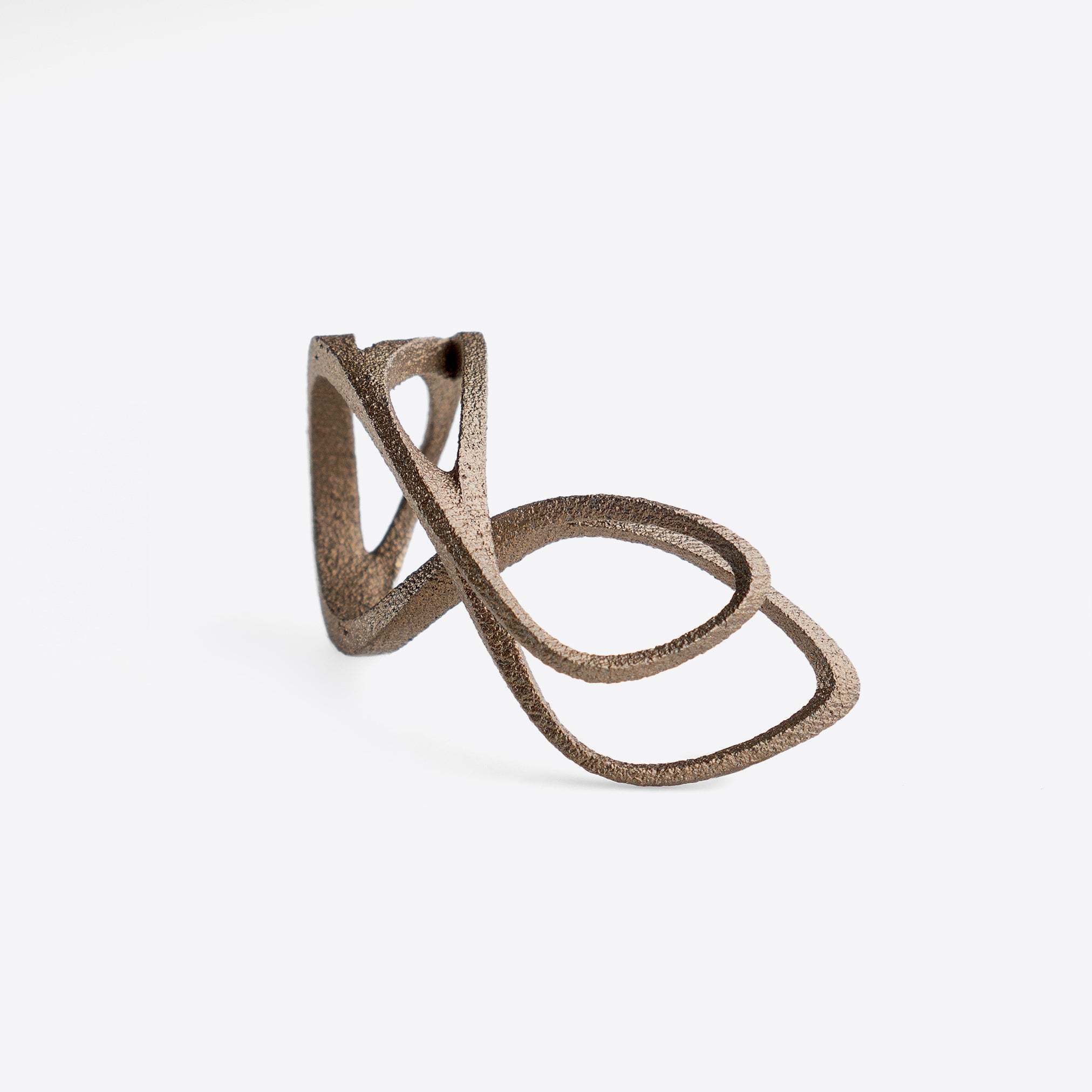 The Mobius ring engages the hand with a fluidly crafted single line that drapes and doubles over to form our signature elliptical "petal". The ring can be worn with the "petals" flowing either upright or across the back of the hand. The Mobius design comes in two different scales, Bold and Light. When paired together on separate fingers, they nest perfectly next to each other and appear to form one continuous ring. Each Mobius ring is sold separately.