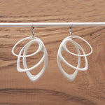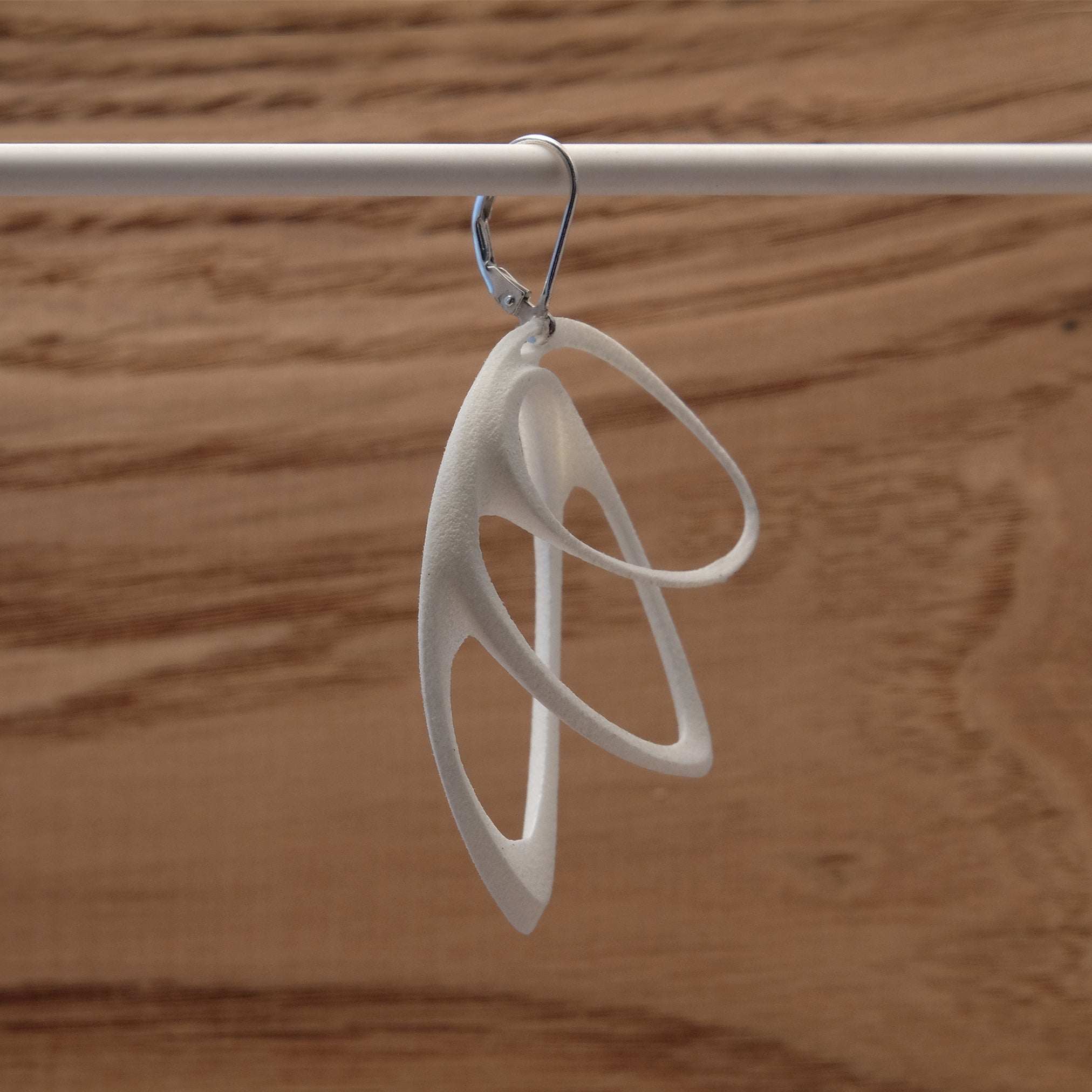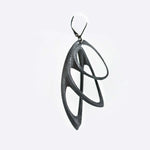 Black polished Orbis Nylon Earrings with three elliptical open loops in descending sizes, hanging on silver hooks