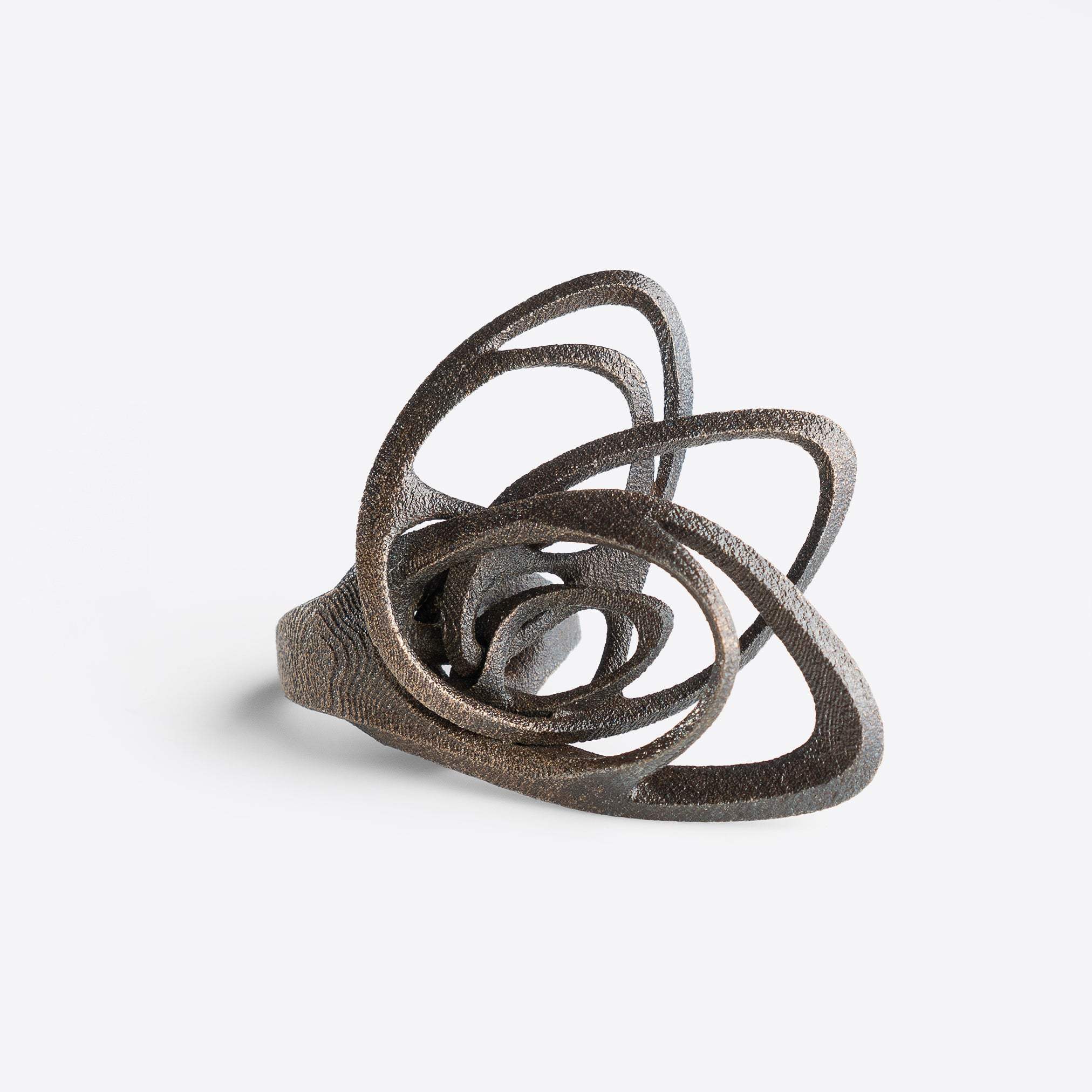 Papilio Steel Ring Bold Matte finish industrial textured elliptical petals design
