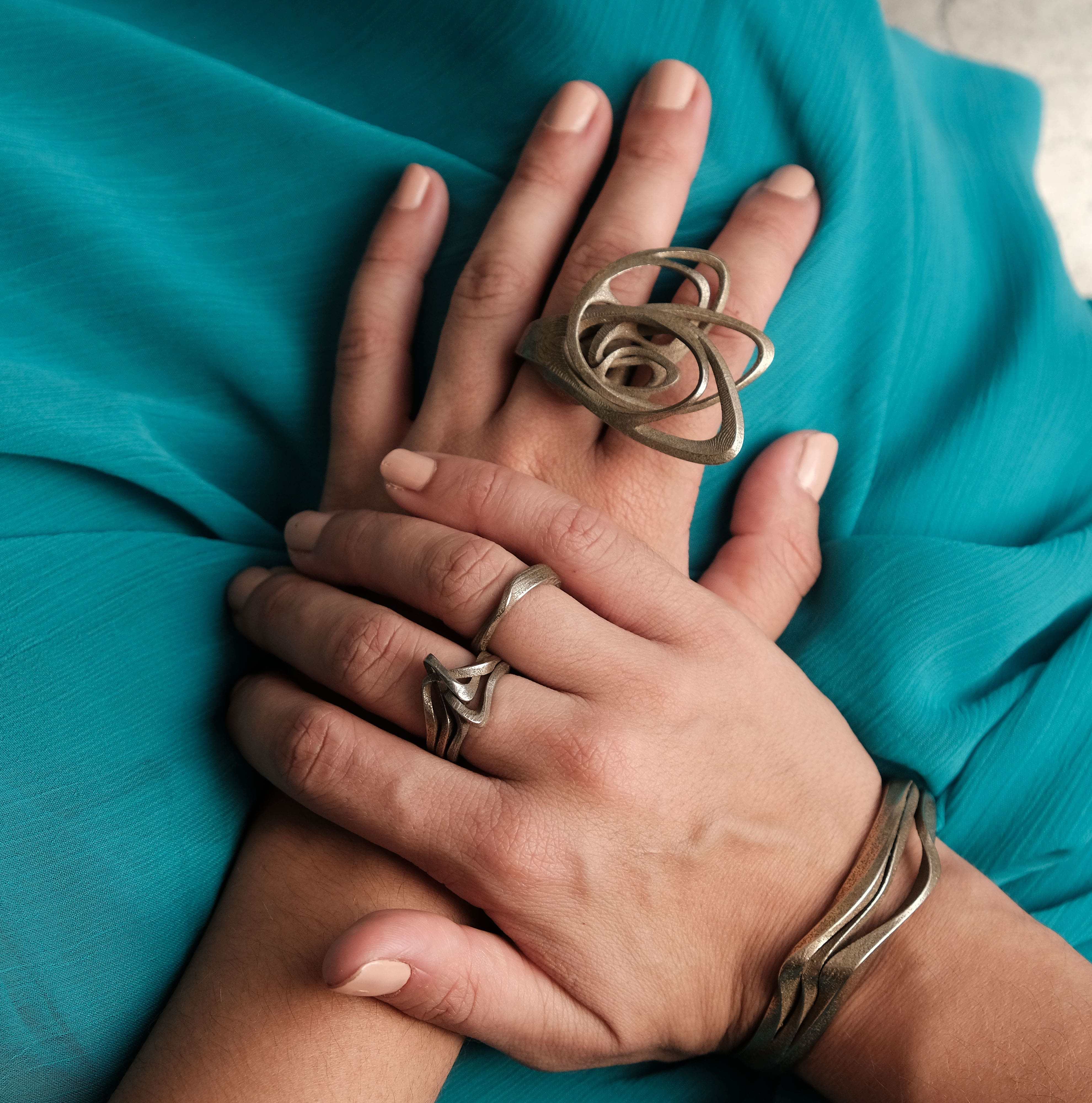 The Papilio ring is a highly refined statement ring that extends across the hand. The design features four of our signature, elliptical “petals” in varying sizes which gracefully connect back to the finger with intricate edge detailing and fluid intersection.