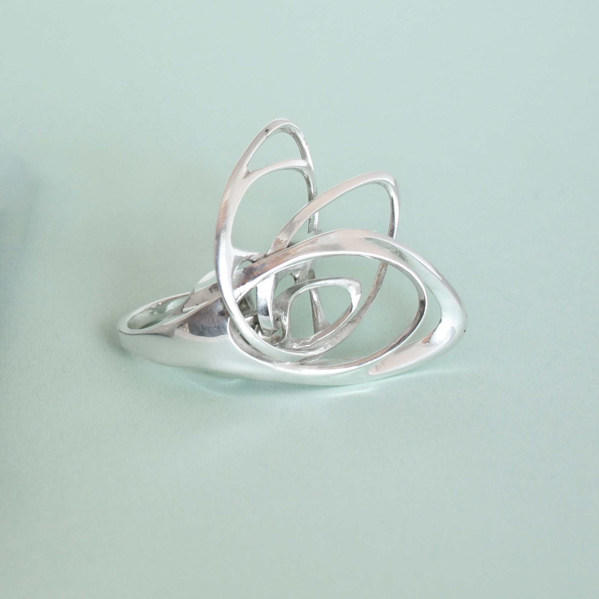 Sterling silver Papilio Ring bold statement design with elliptical petals and intricate detailing