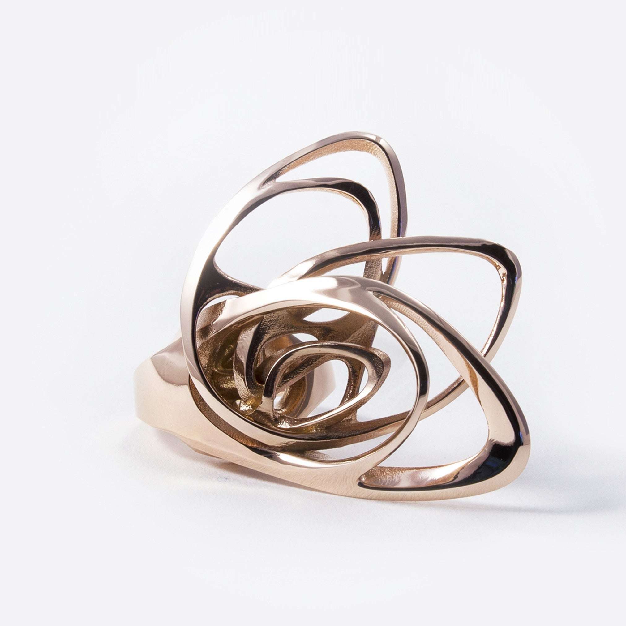 The Papilio ring is a highly refined statement ring that extends across the hand. The design features four of our signature, elliptical “petals” in varying sizes which gracefully connect back to the finger with intricate edge detailing and fluid intersection.