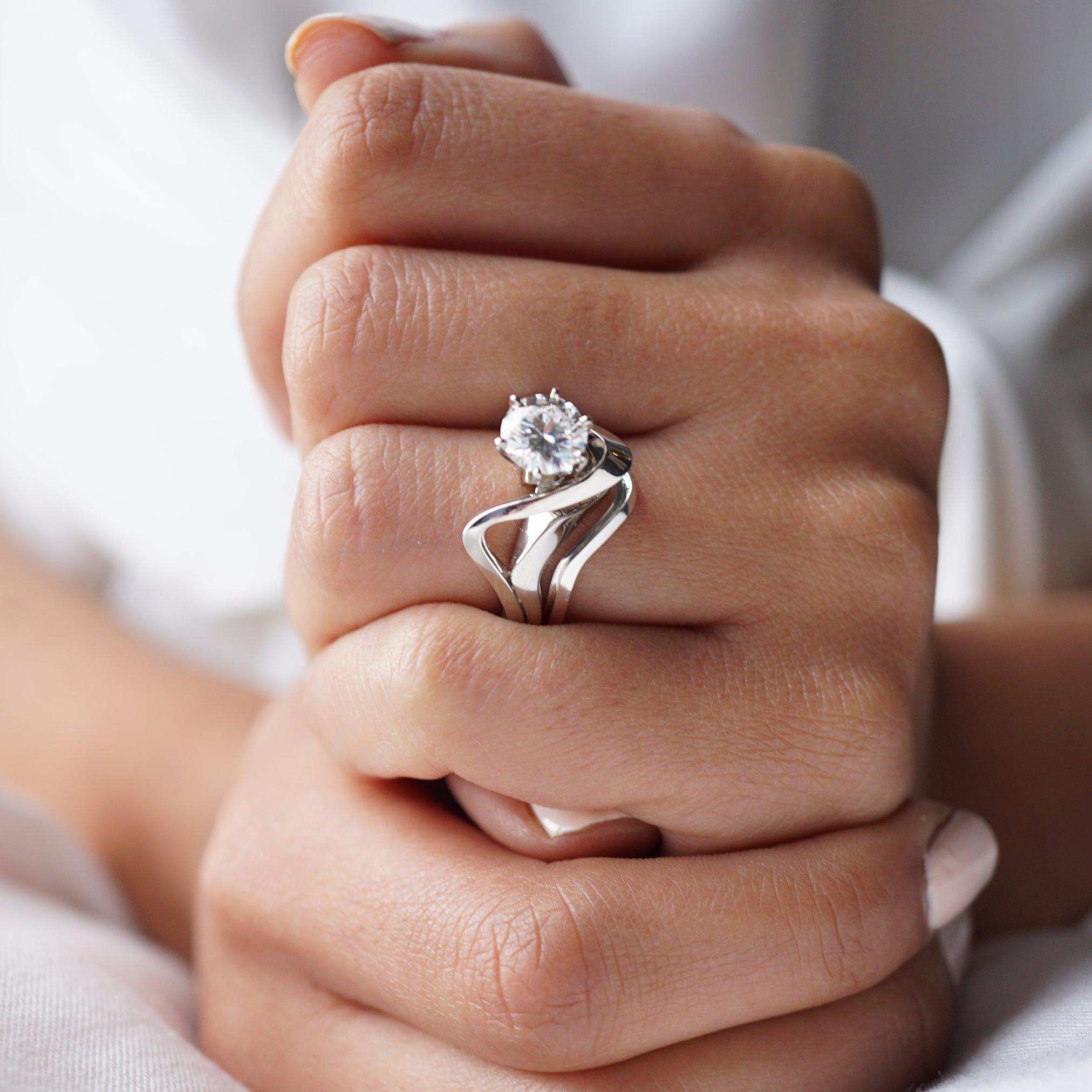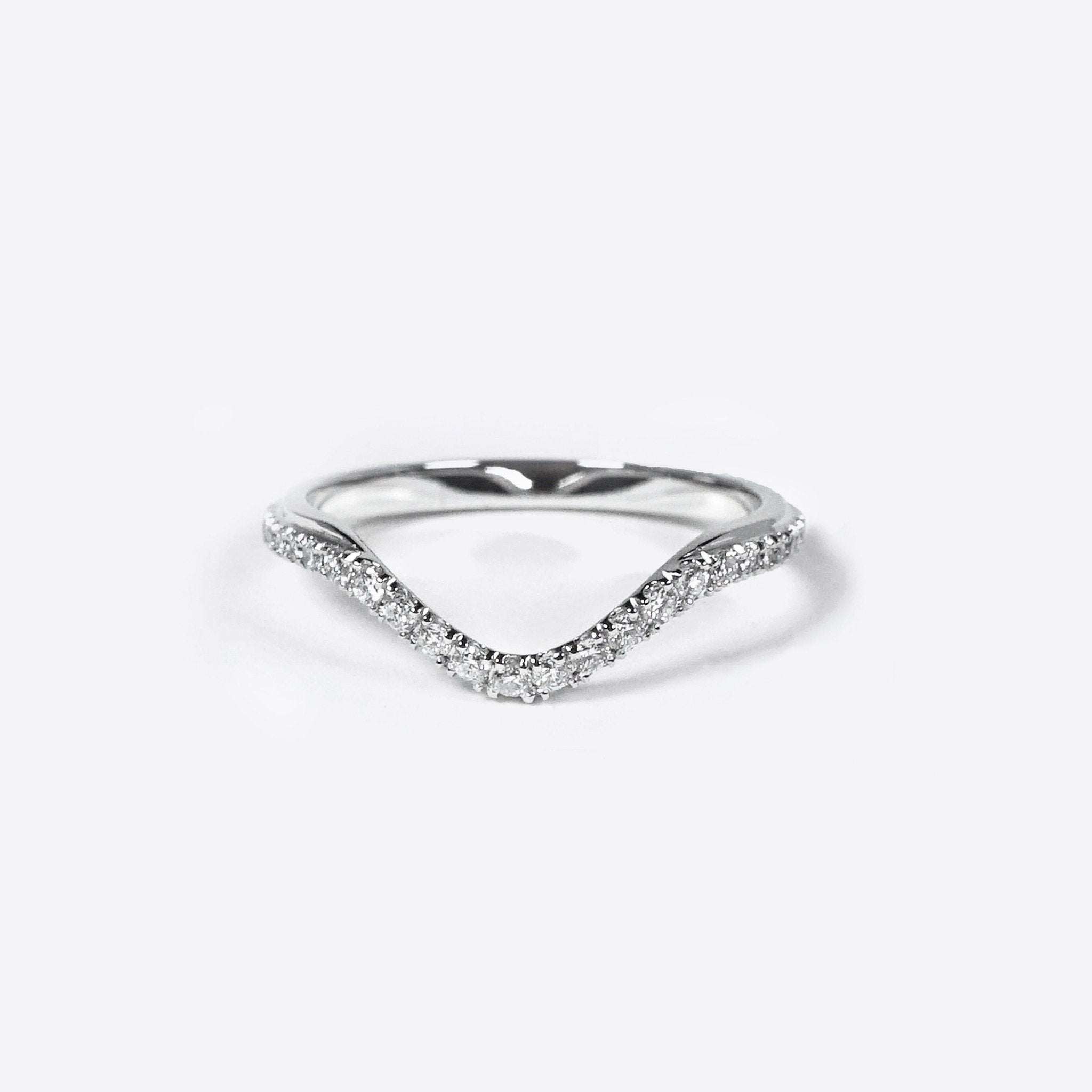 Minimalist silver Hera Ring with a symmetrical V-shaped design on white background
