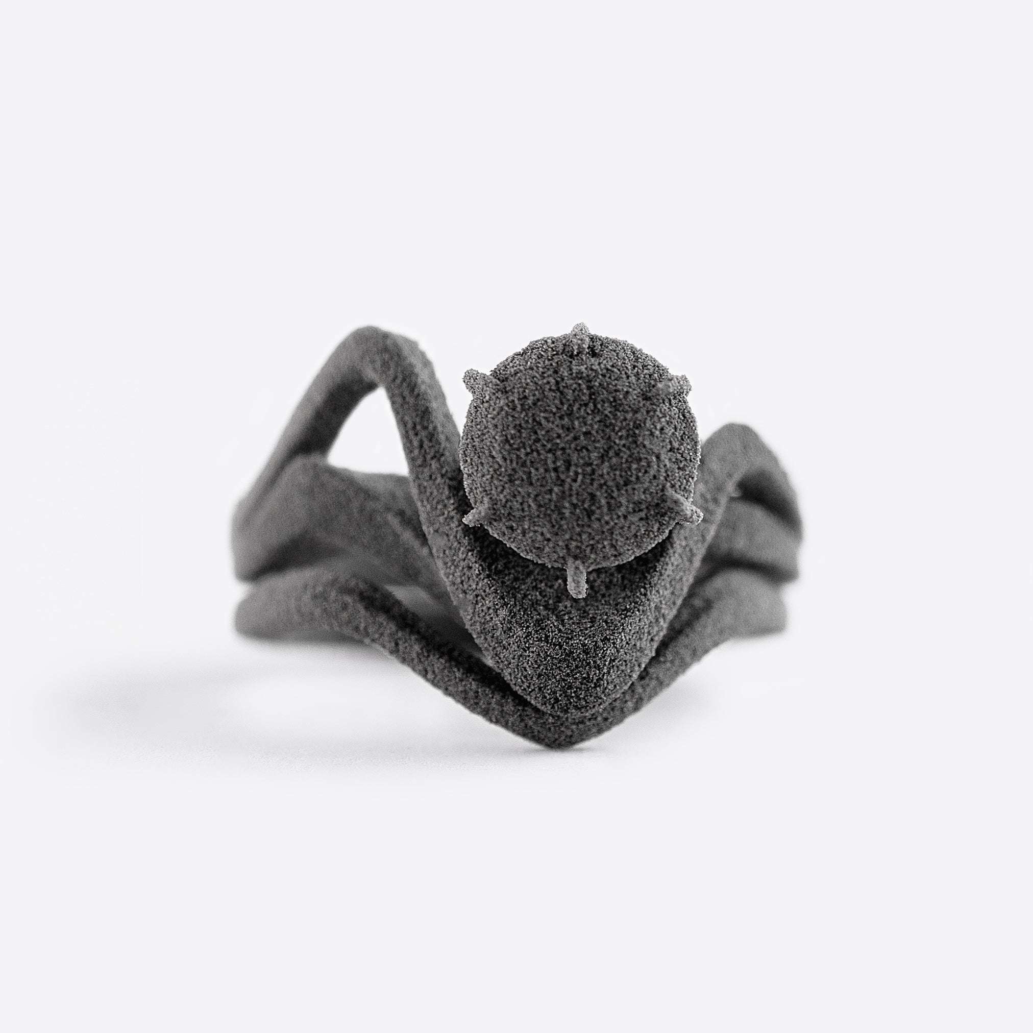 Rhea sample engagement ring gray nylon with unique asymmetrical curve design