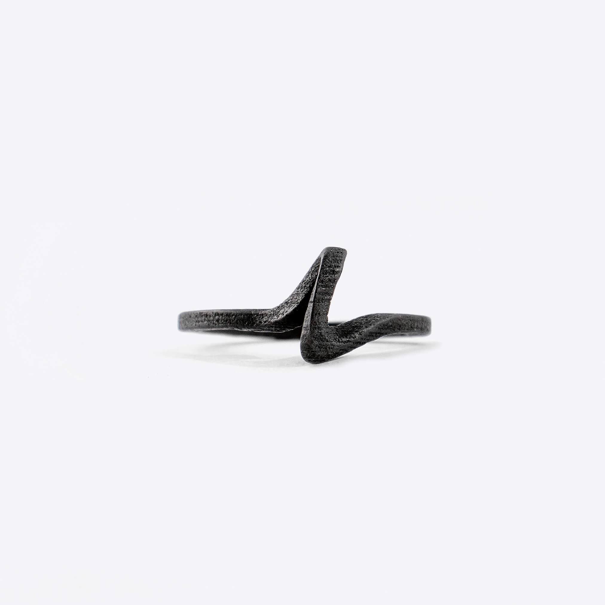 Sera Steel Ring with delicate twisted knot design in gray steel on white background